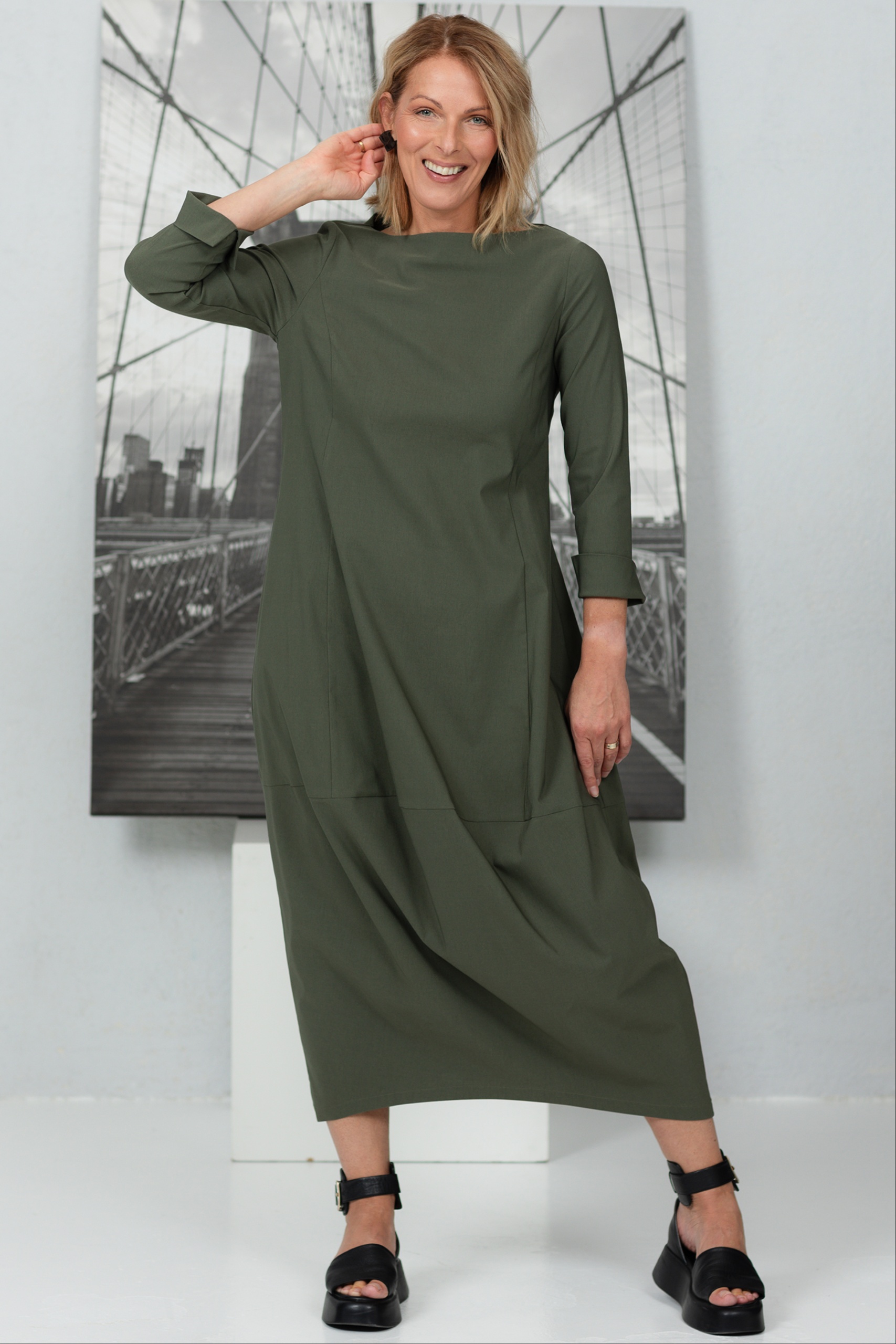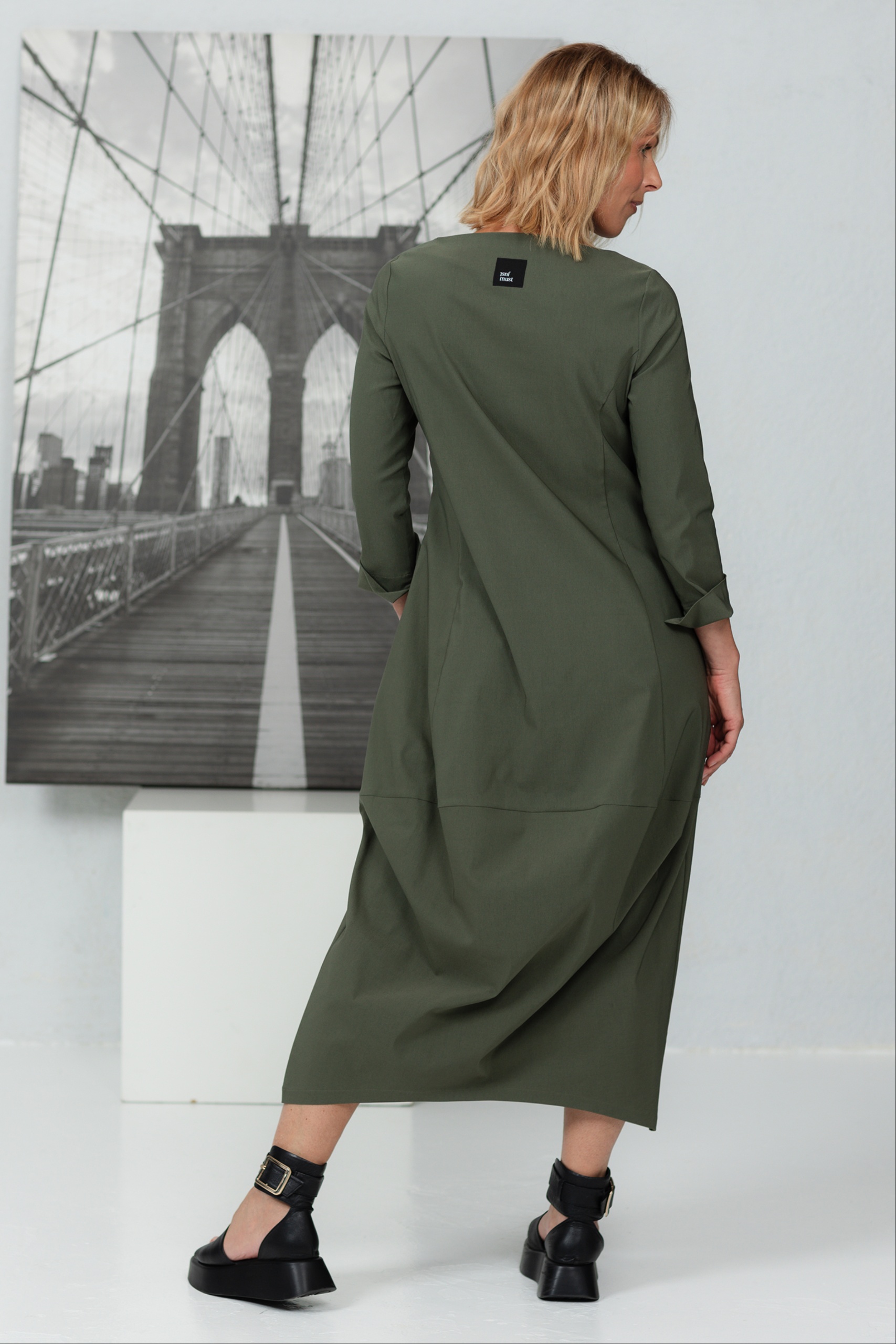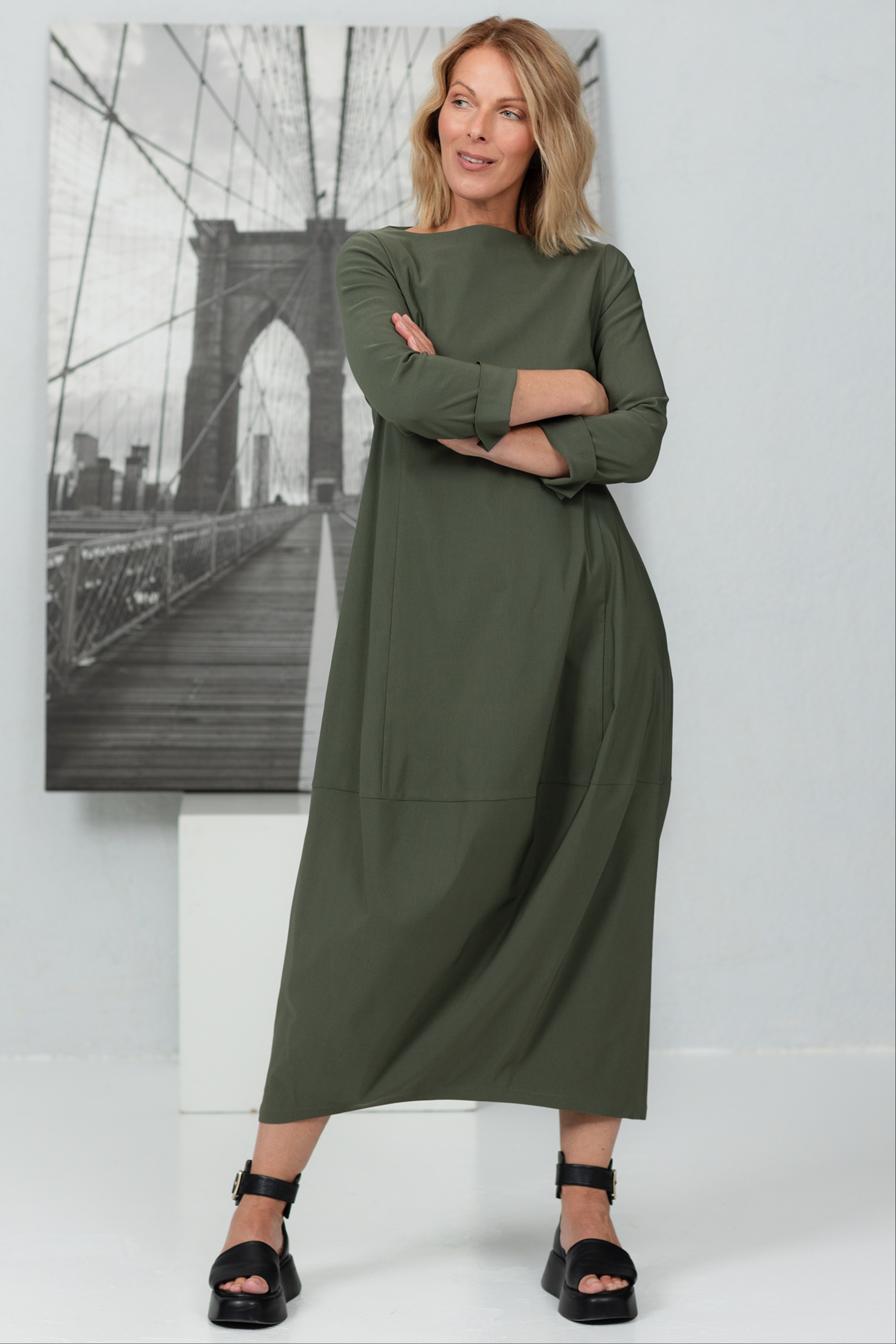 Be the first to review “Midi length balloon dress Akarui, khaki”