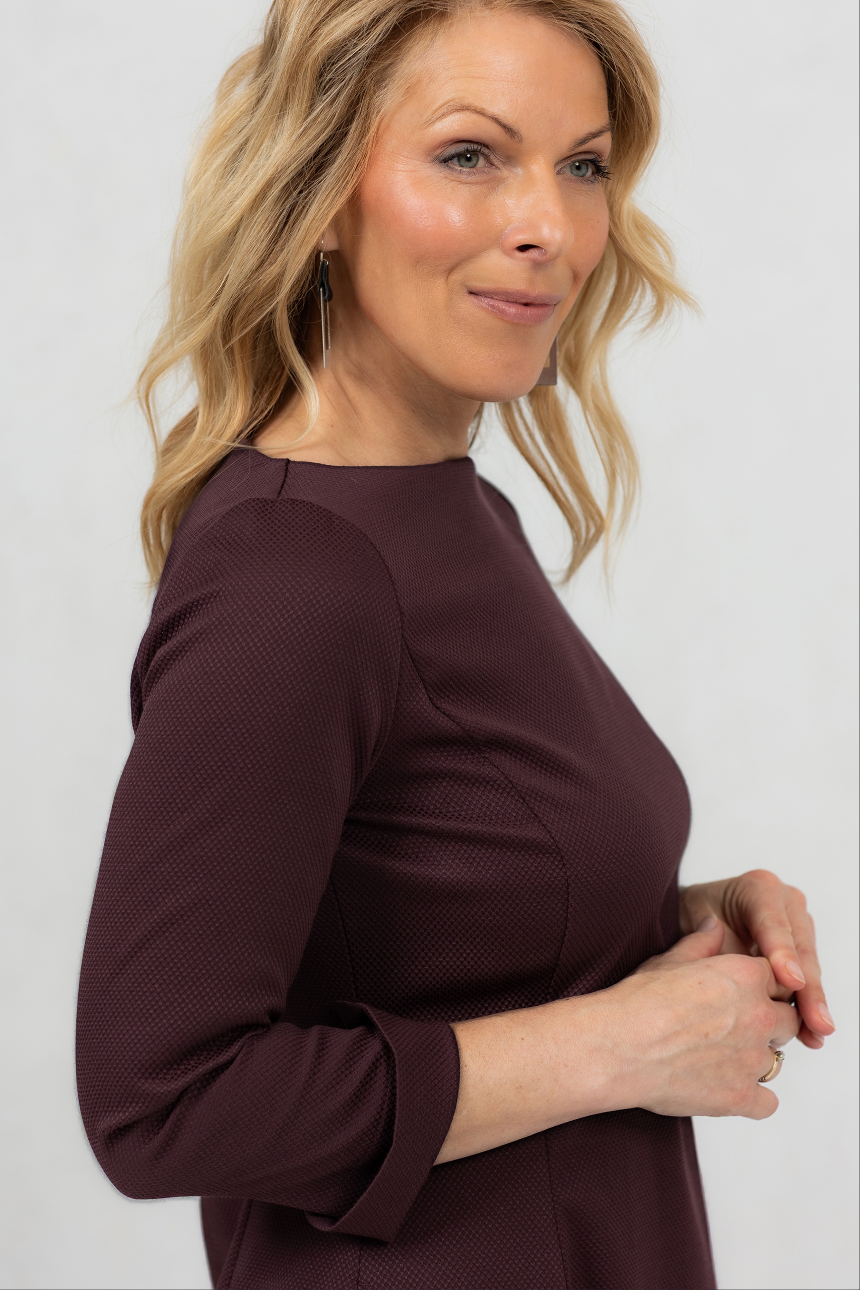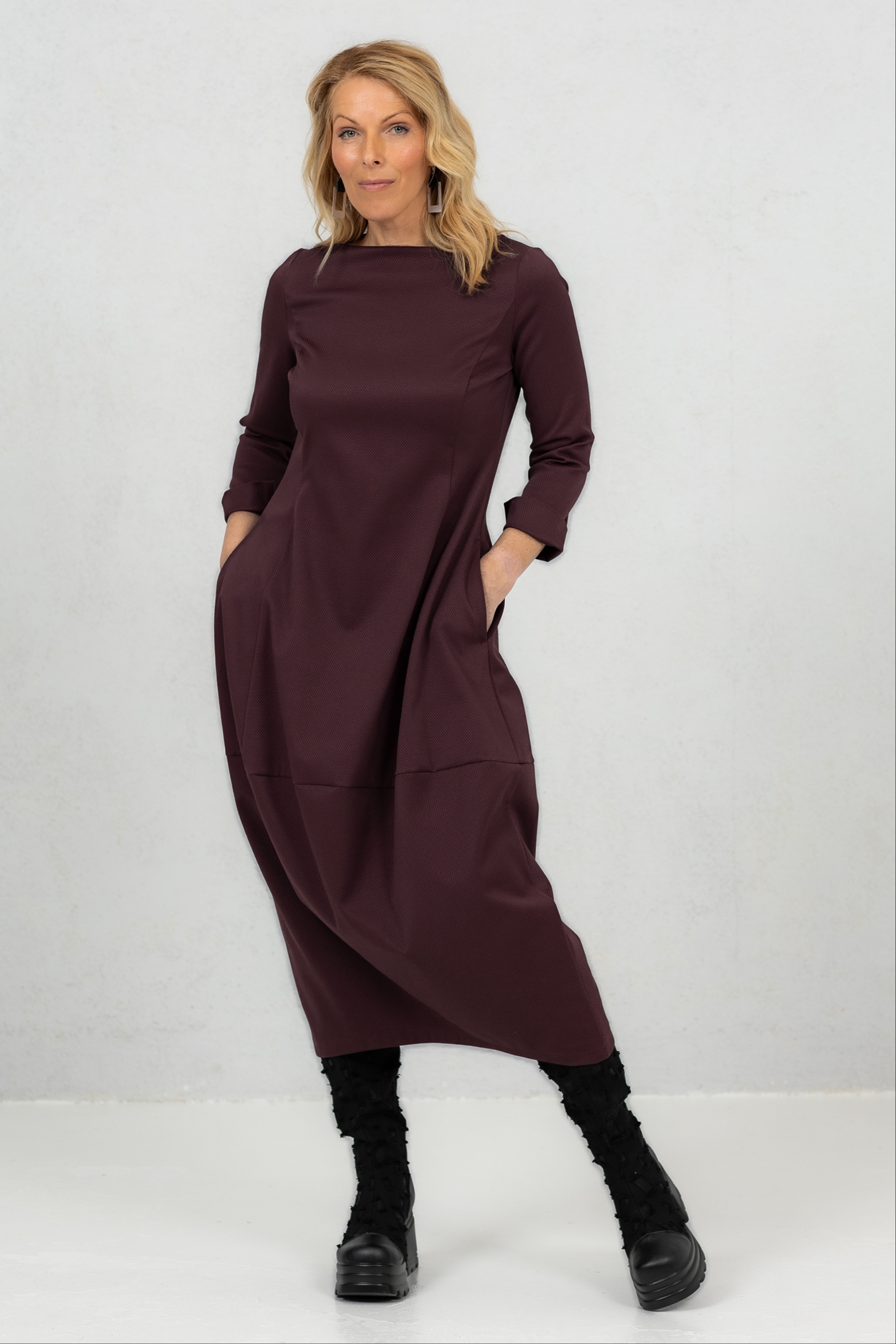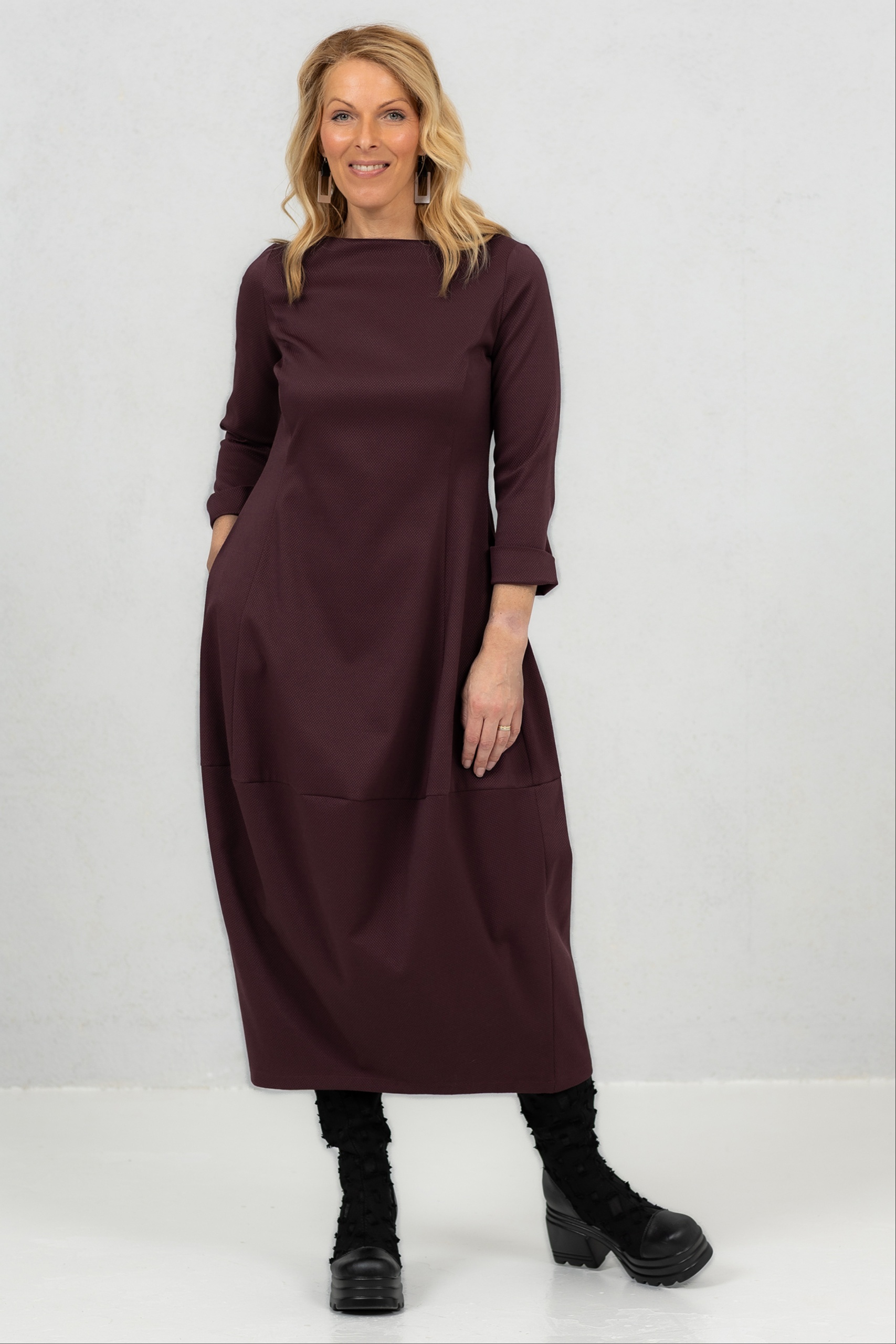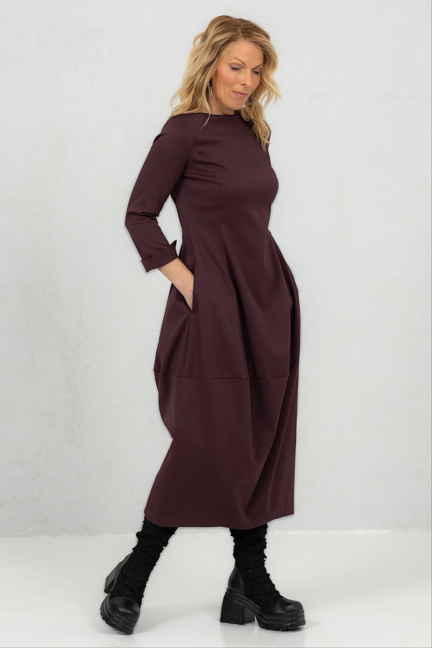 Be the first to review “Textured fabric balloon dress Akarui Sho, plum purple”