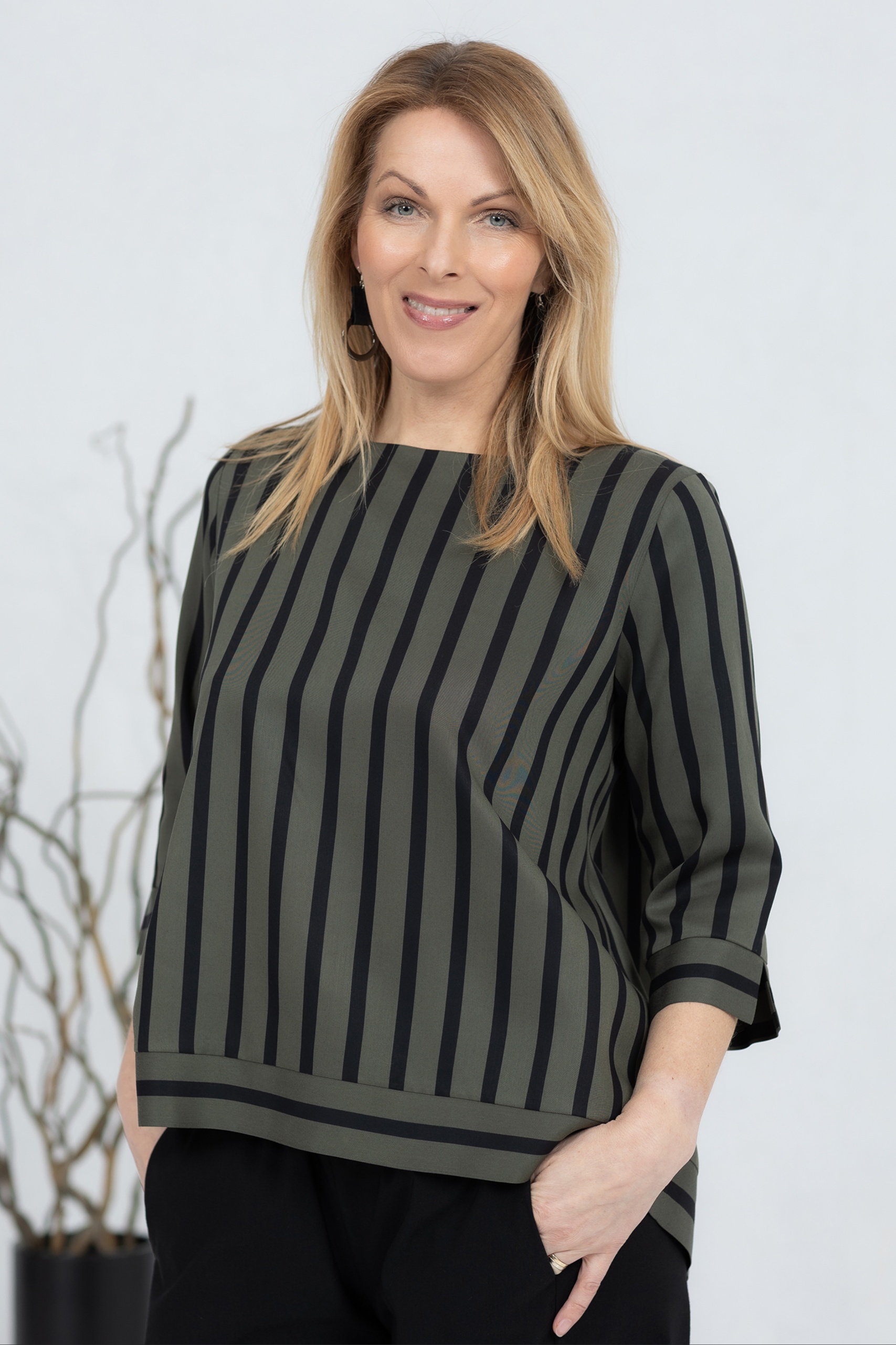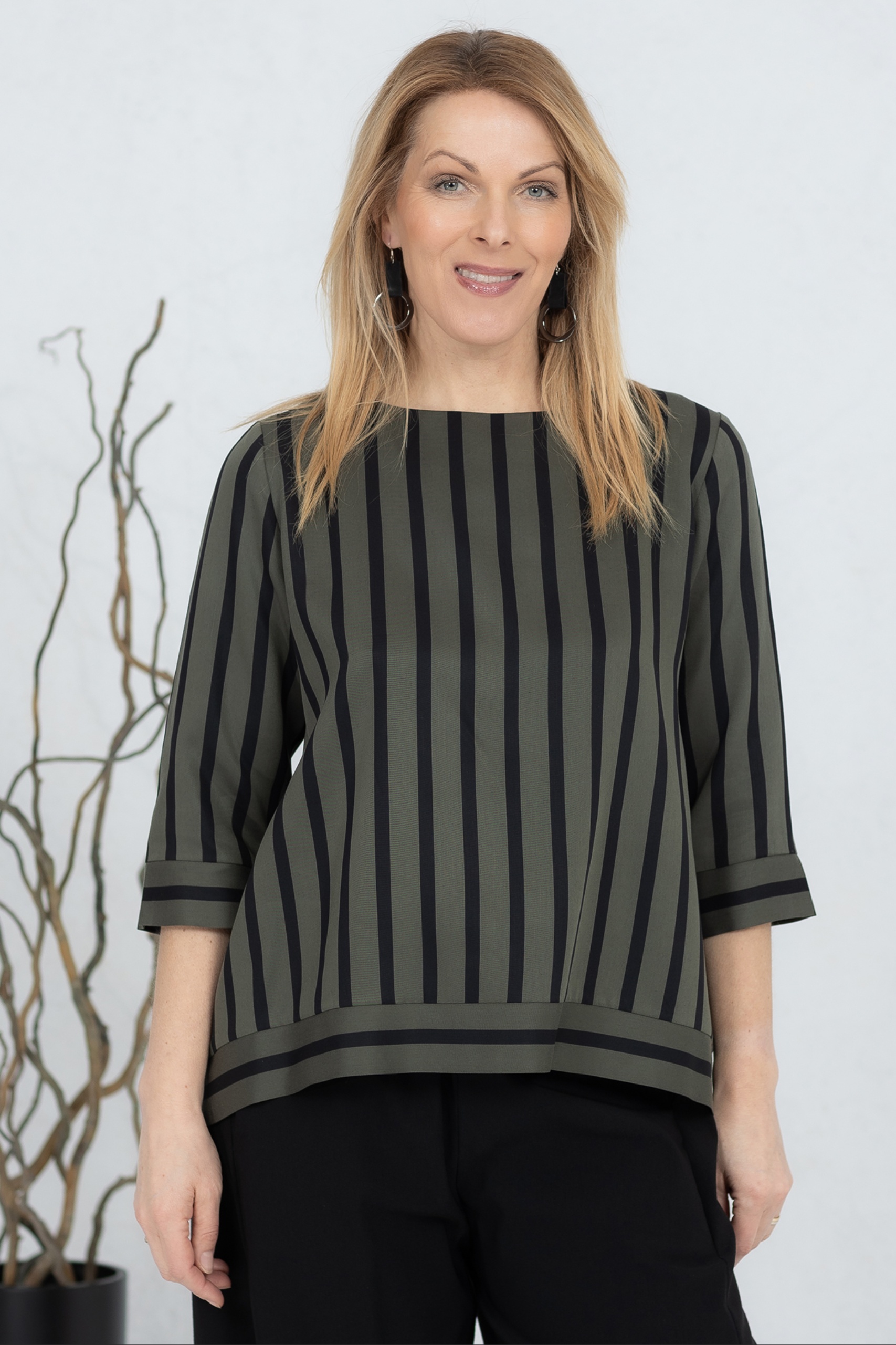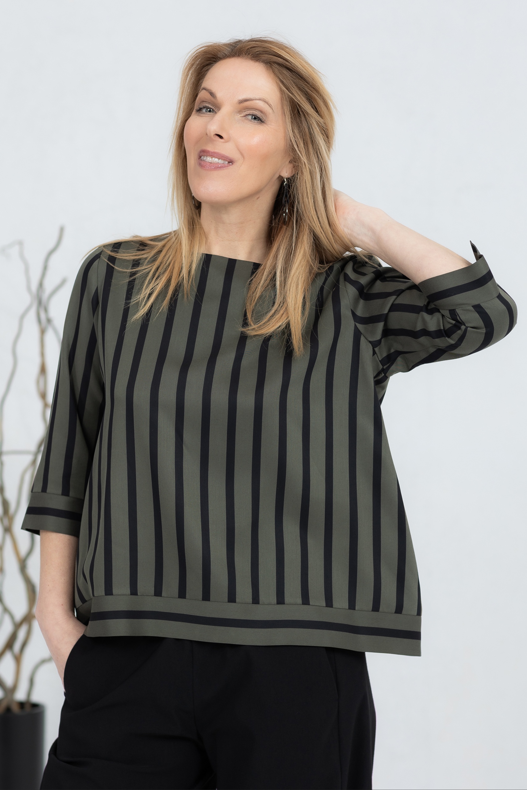 Wide-cut blouse Anata, green stripe