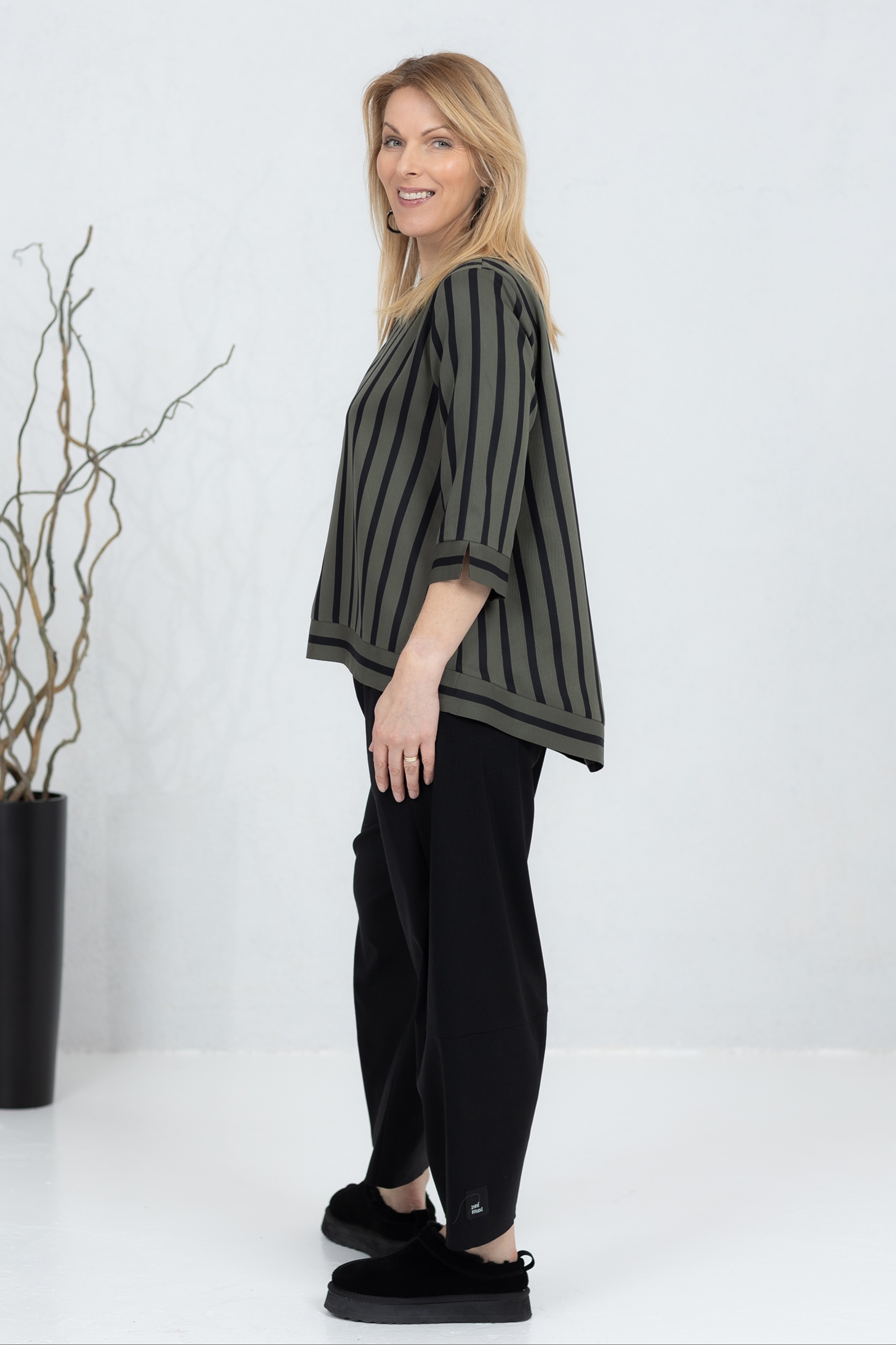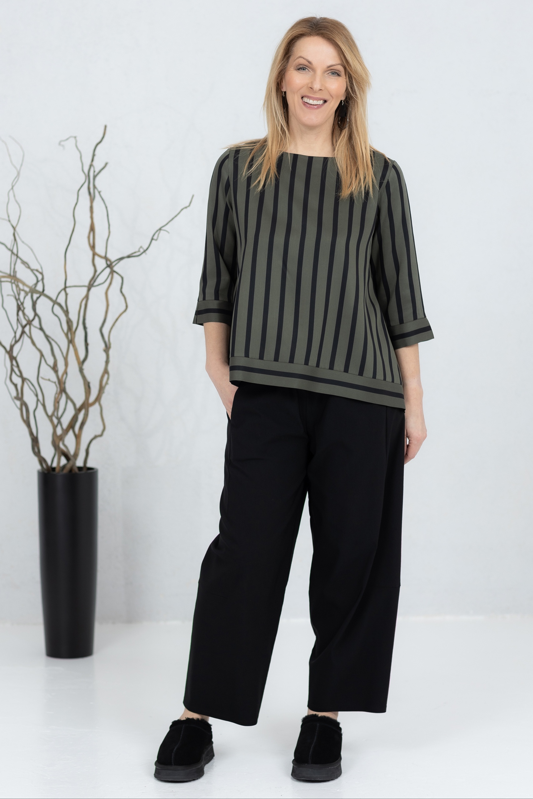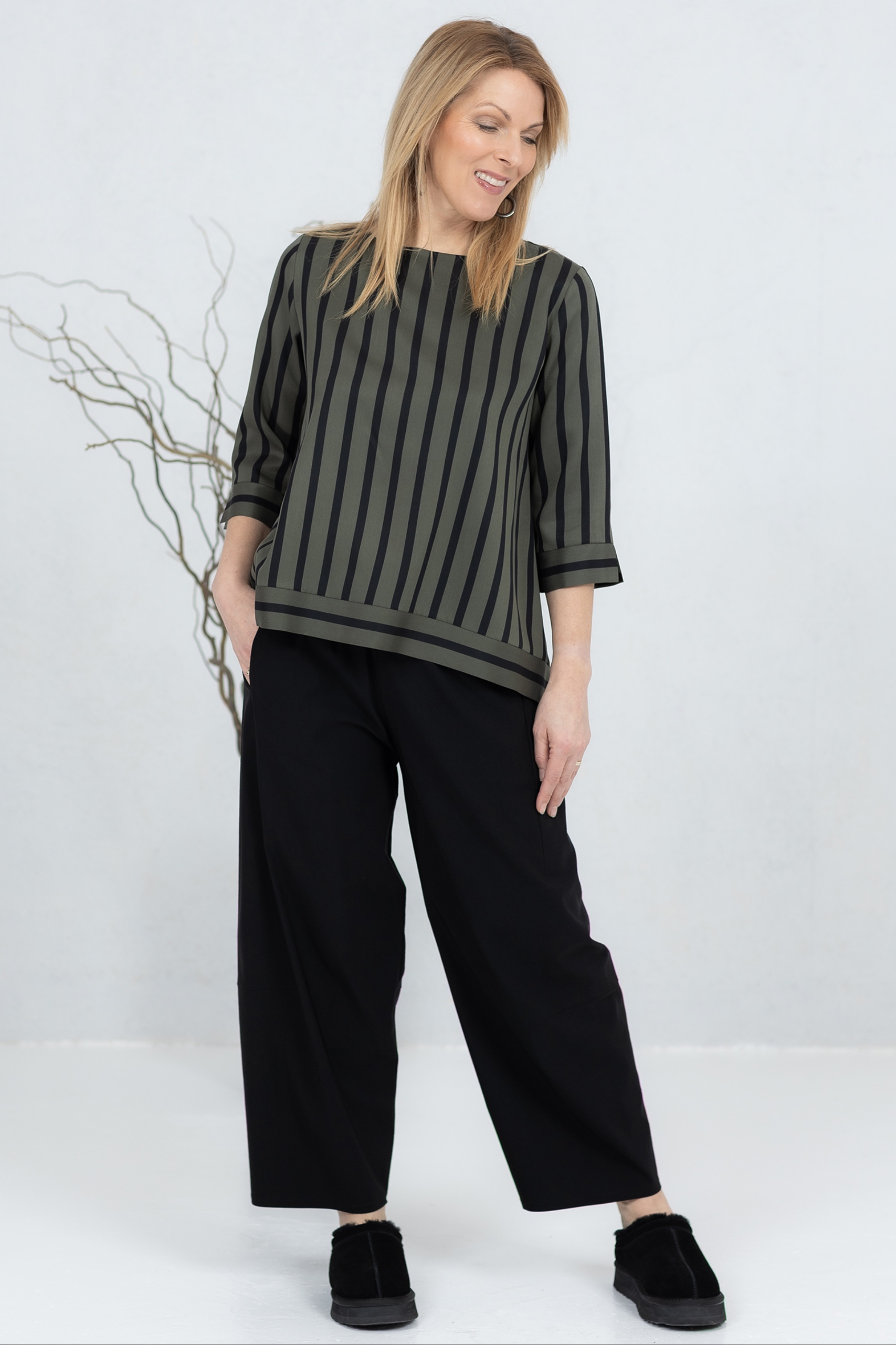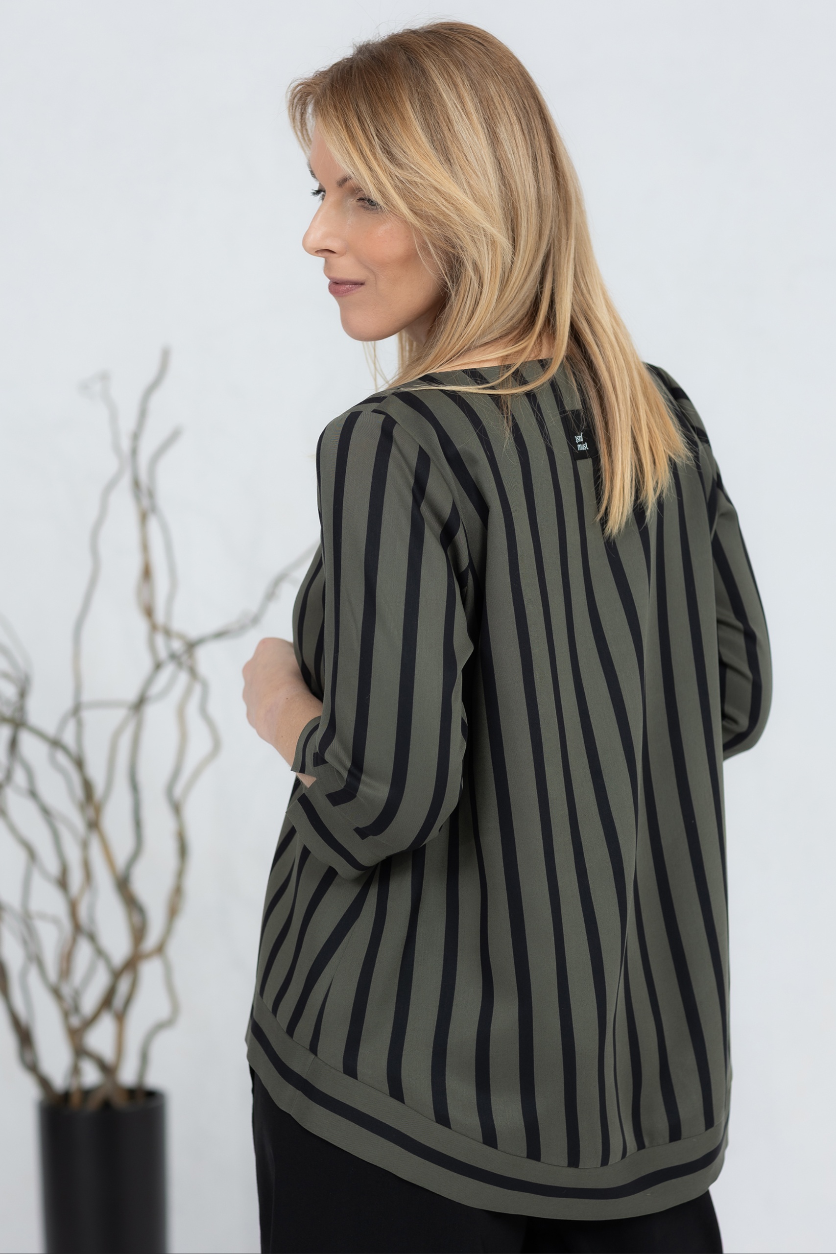 Be the first to review “Wide-cut blouse Anata, green stripe”