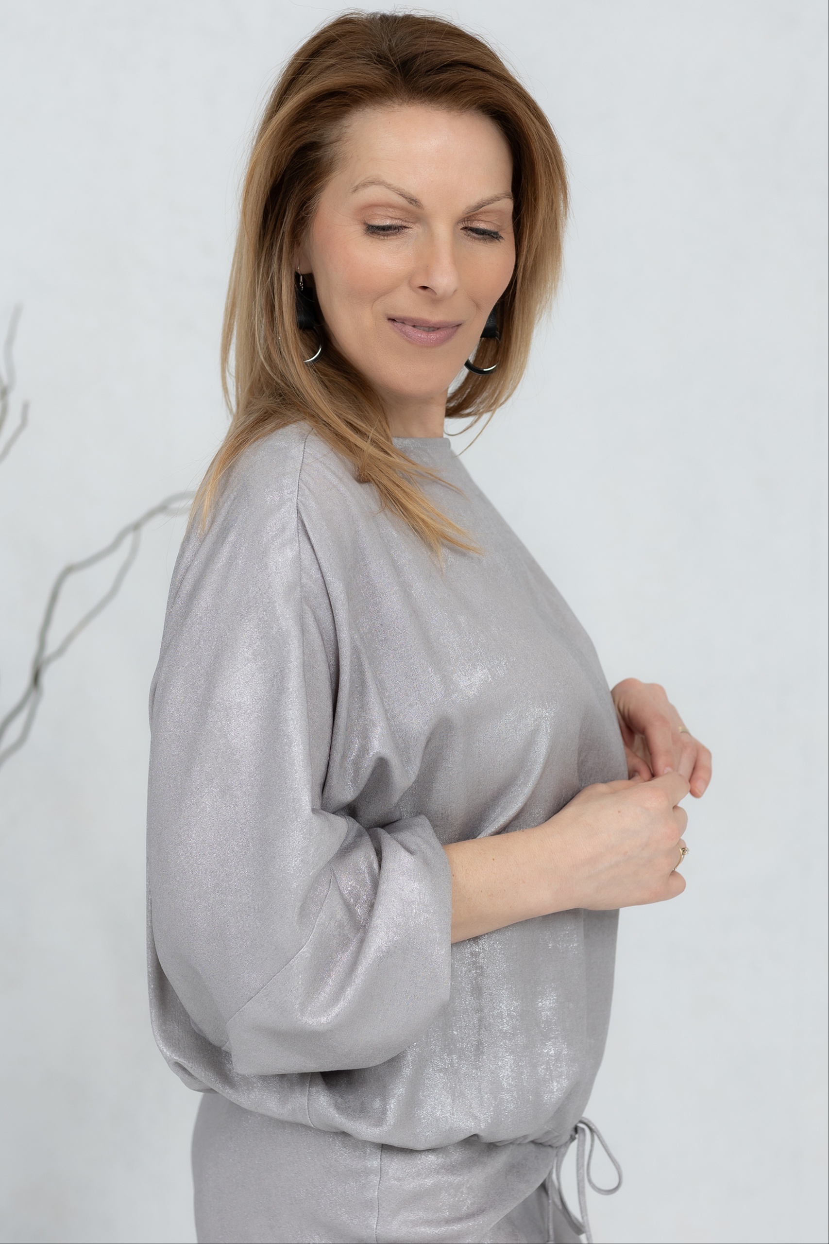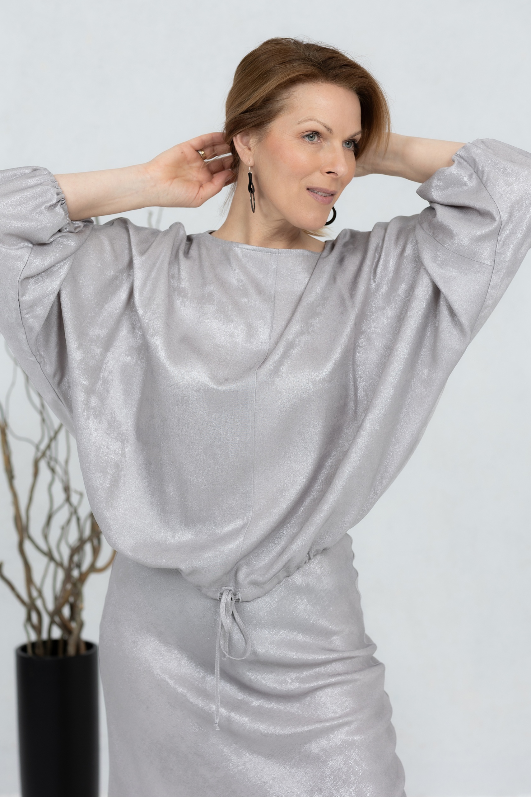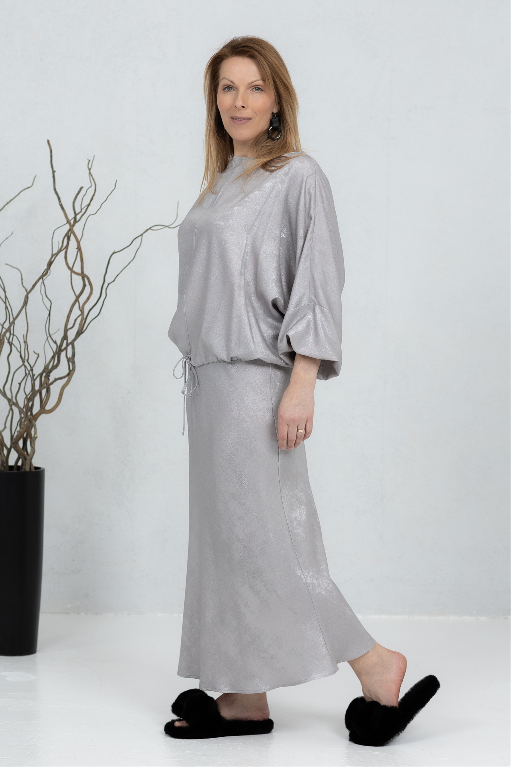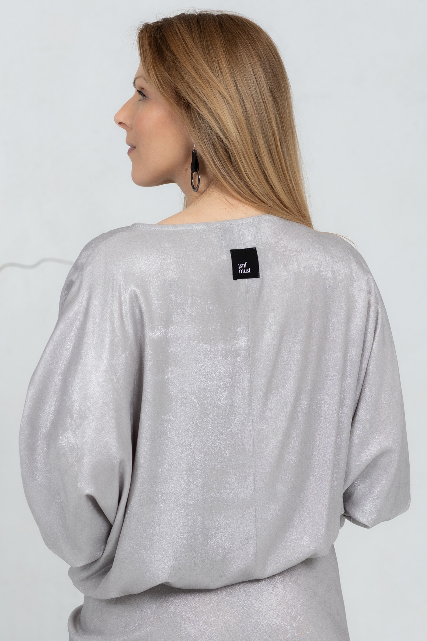 Be the first to review “Matte, loose shiny viscose blouse, grey”