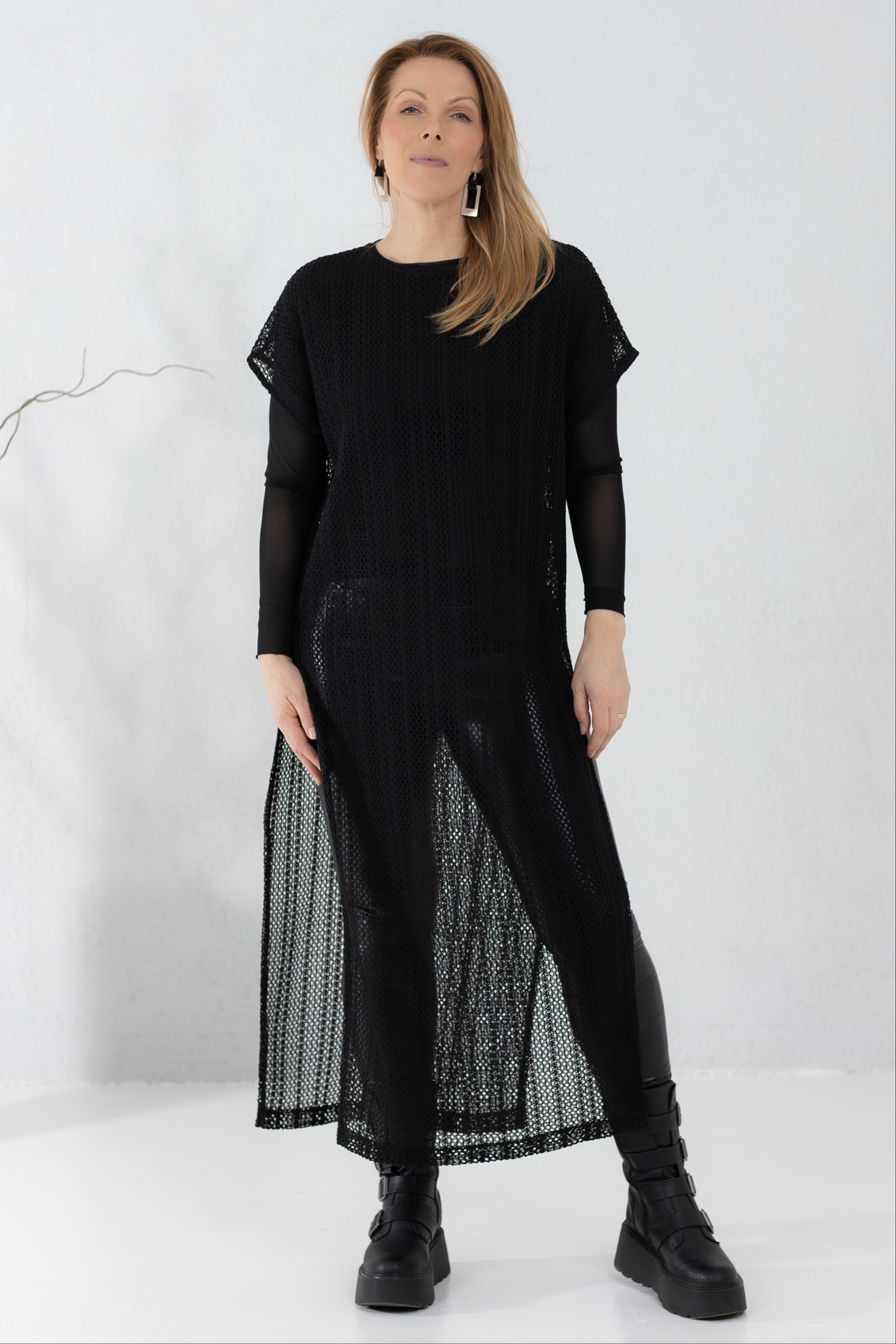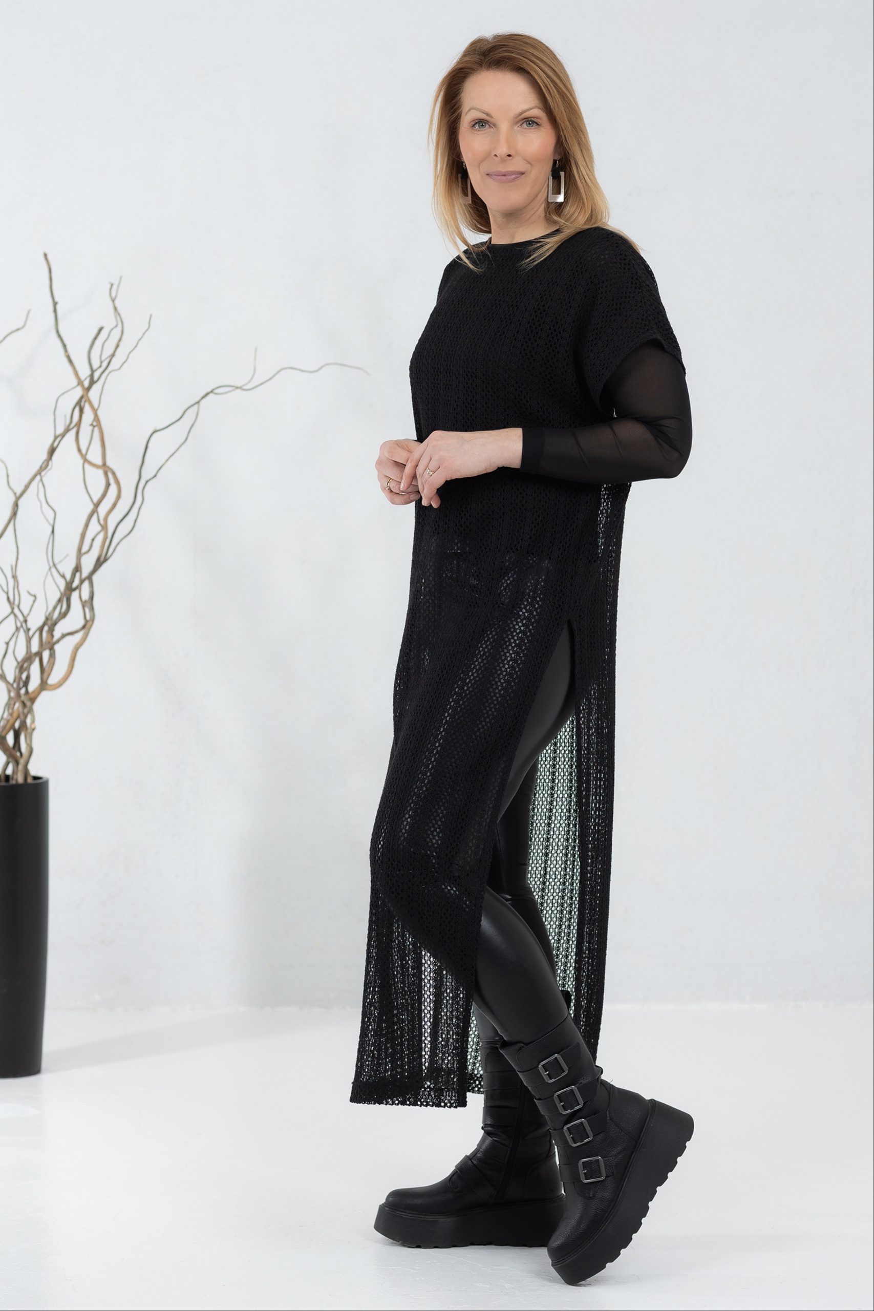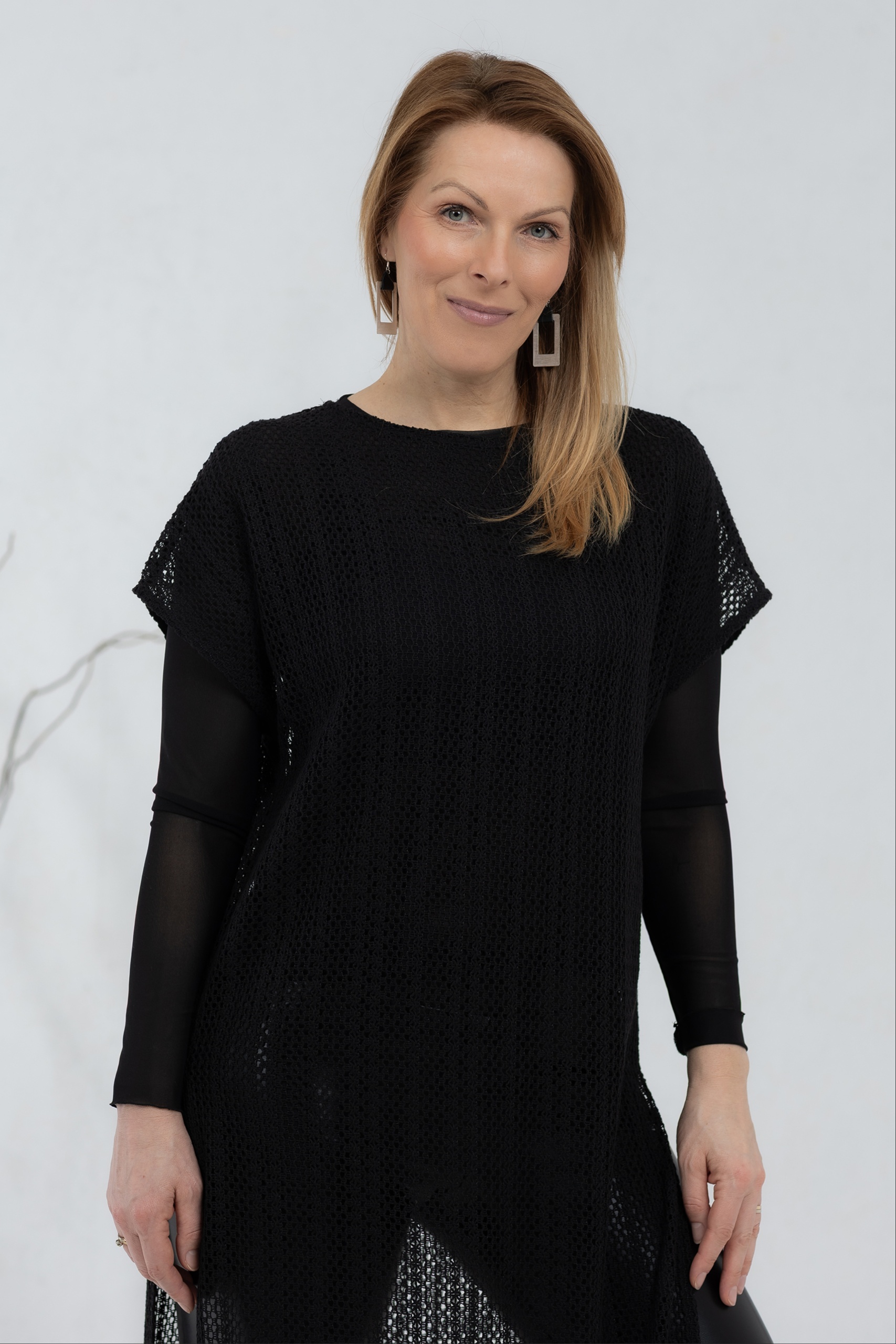 The Yurui is a lightweight and eye-catching mesh tunic that will add excitement and flare to your outfit. The loose, straight cut falls freely to create a modern and slightly playful silhouette. The long side slits allow freedom of movement and beautifully highlight the garment underneath. The airy mesh fabric makes it an ideal layered element to wear over dresses, trousers or sweaters. The Yurui is a stylish detail that makes a simple outfit instantly eye-catching.