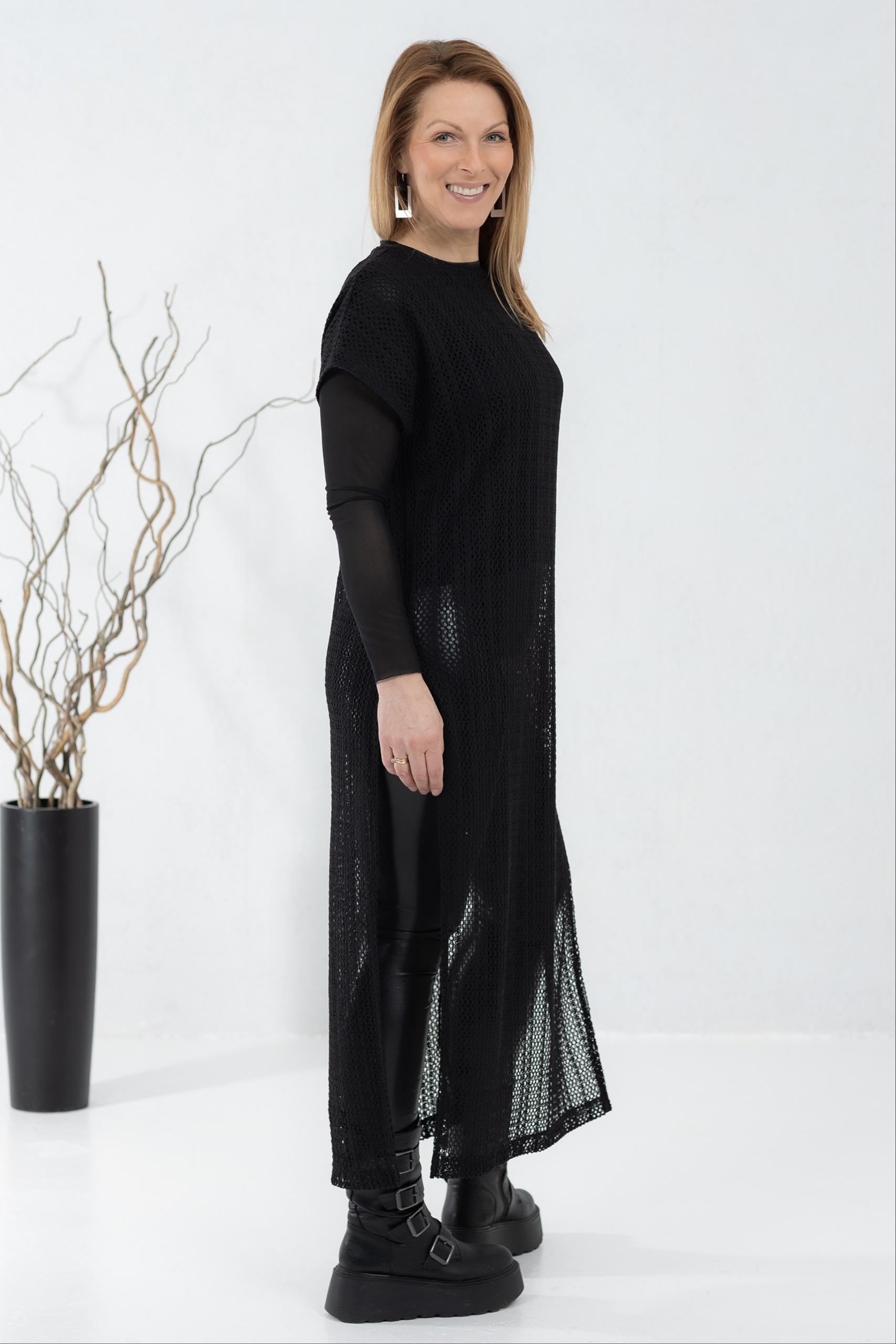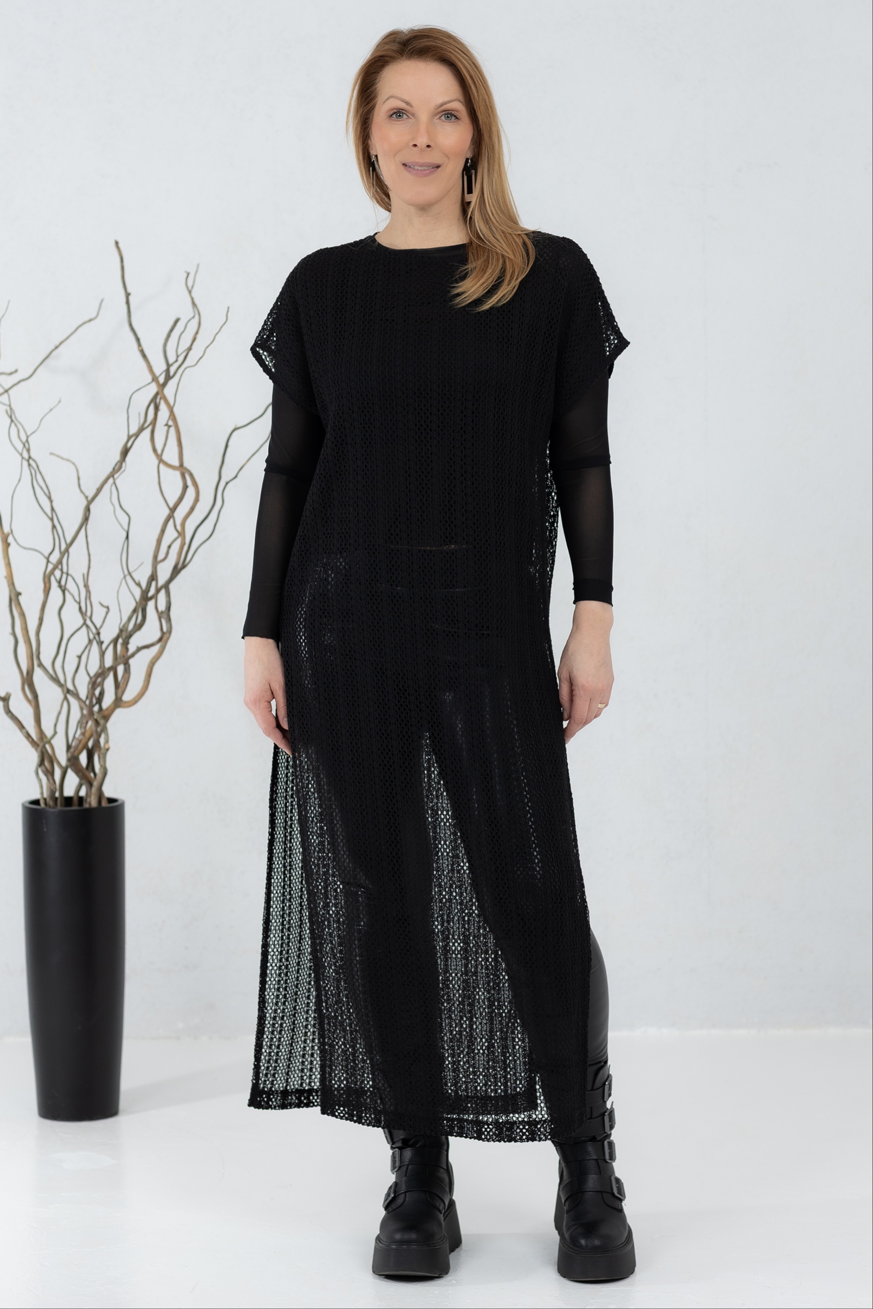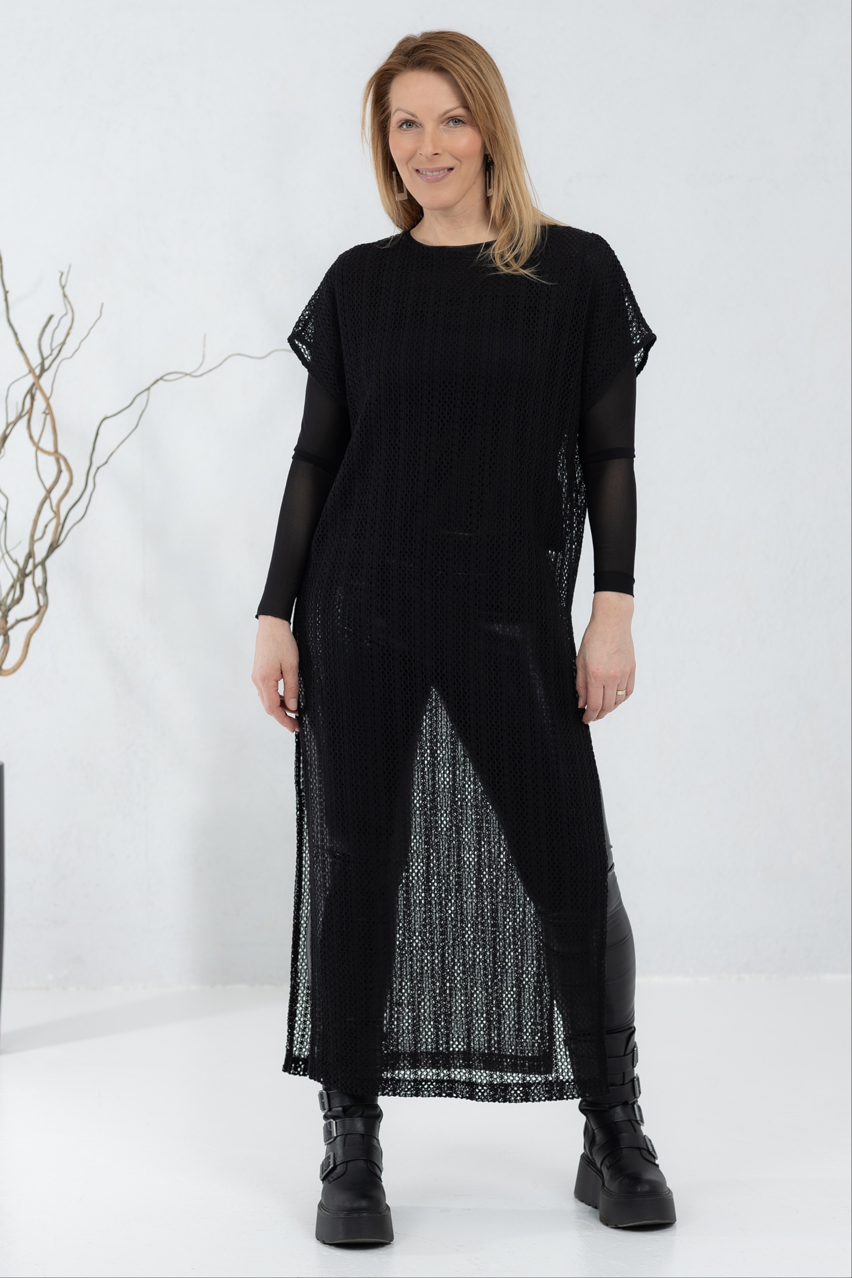 The Yurui is a lightweight and eye-catching mesh tunic that will add excitement and flare to your outfit. The loose, straight cut falls freely to create a modern and slightly playful silhouette. The long side slits allow freedom of movement and beautifully highlight the garment underneath. The airy mesh fabric makes it an ideal layered element to wear over dresses, trousers or sweaters. The Yurui is a stylish detail that makes a simple outfit instantly eye-catching.