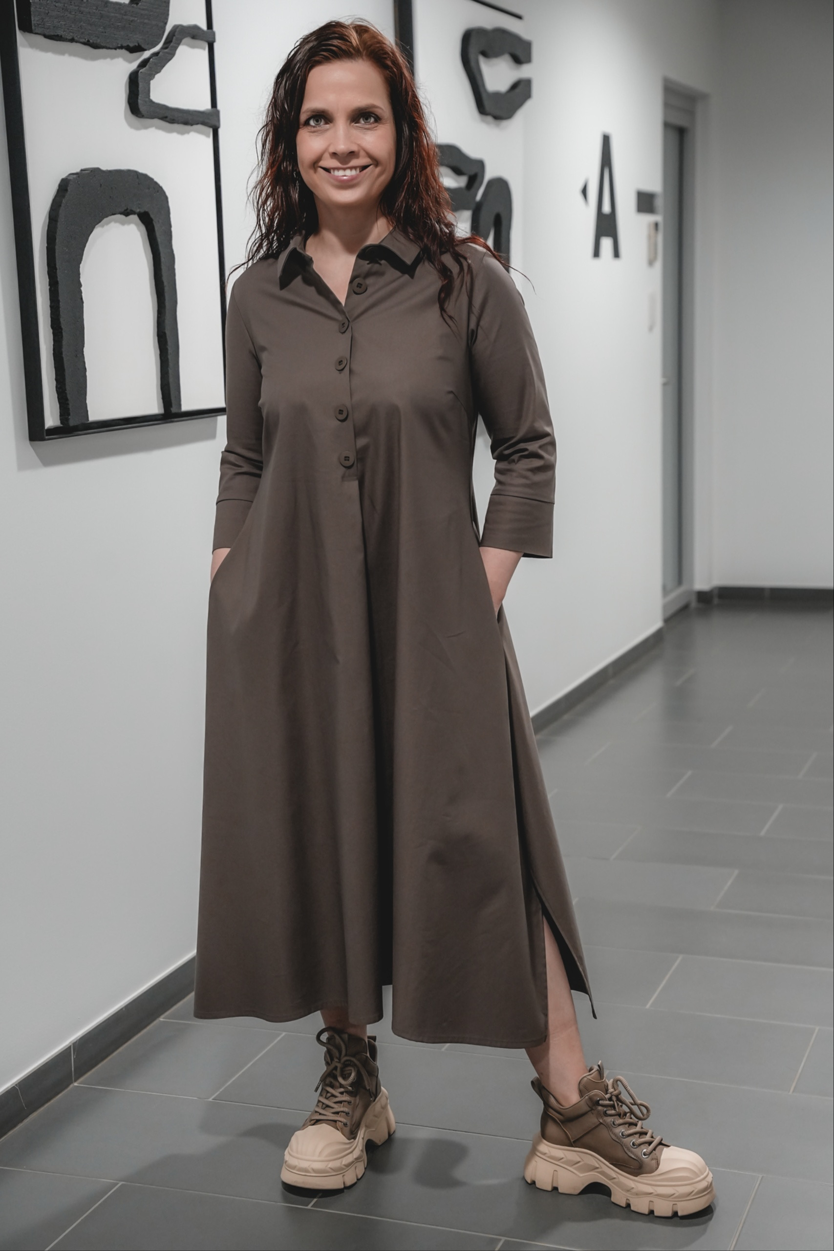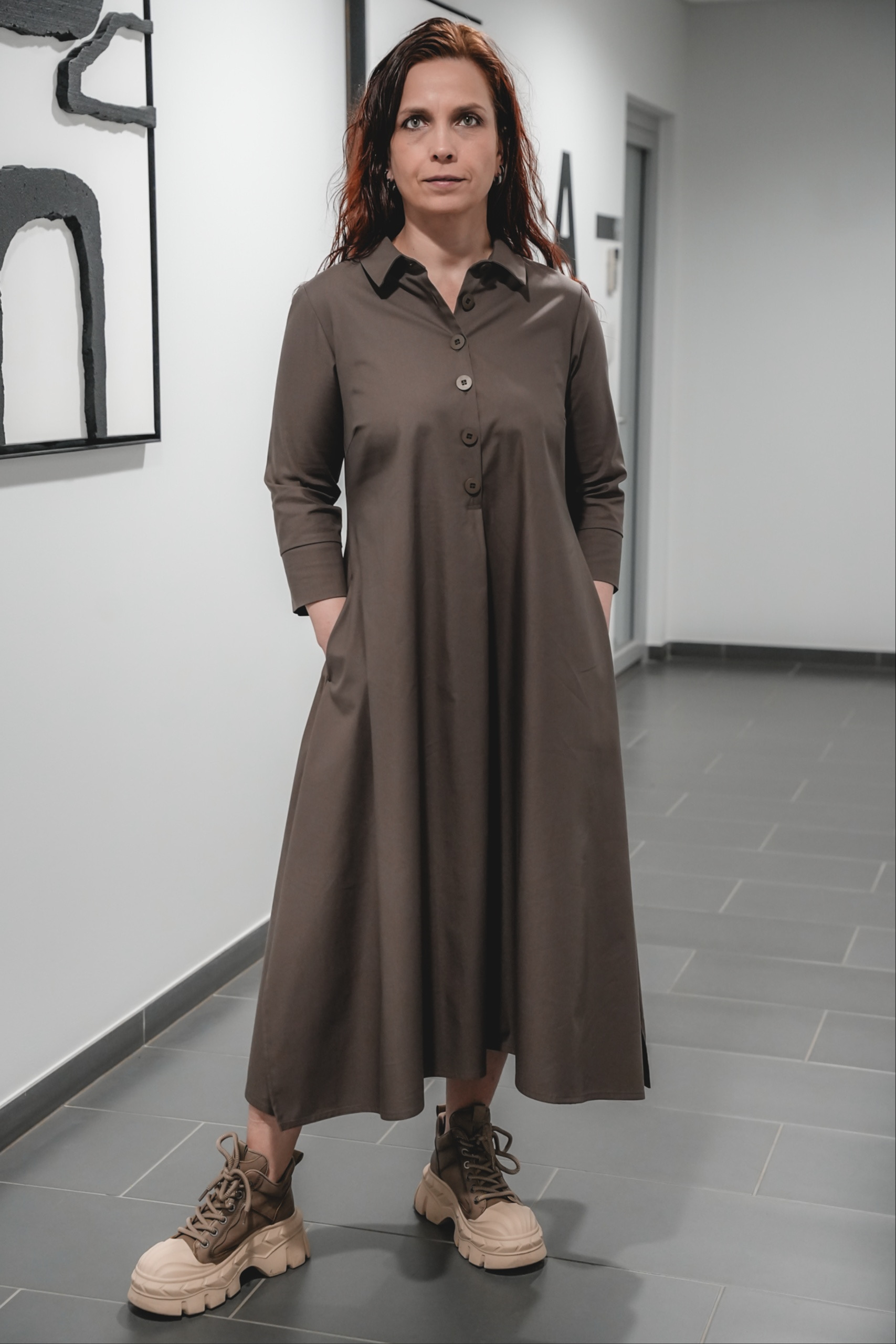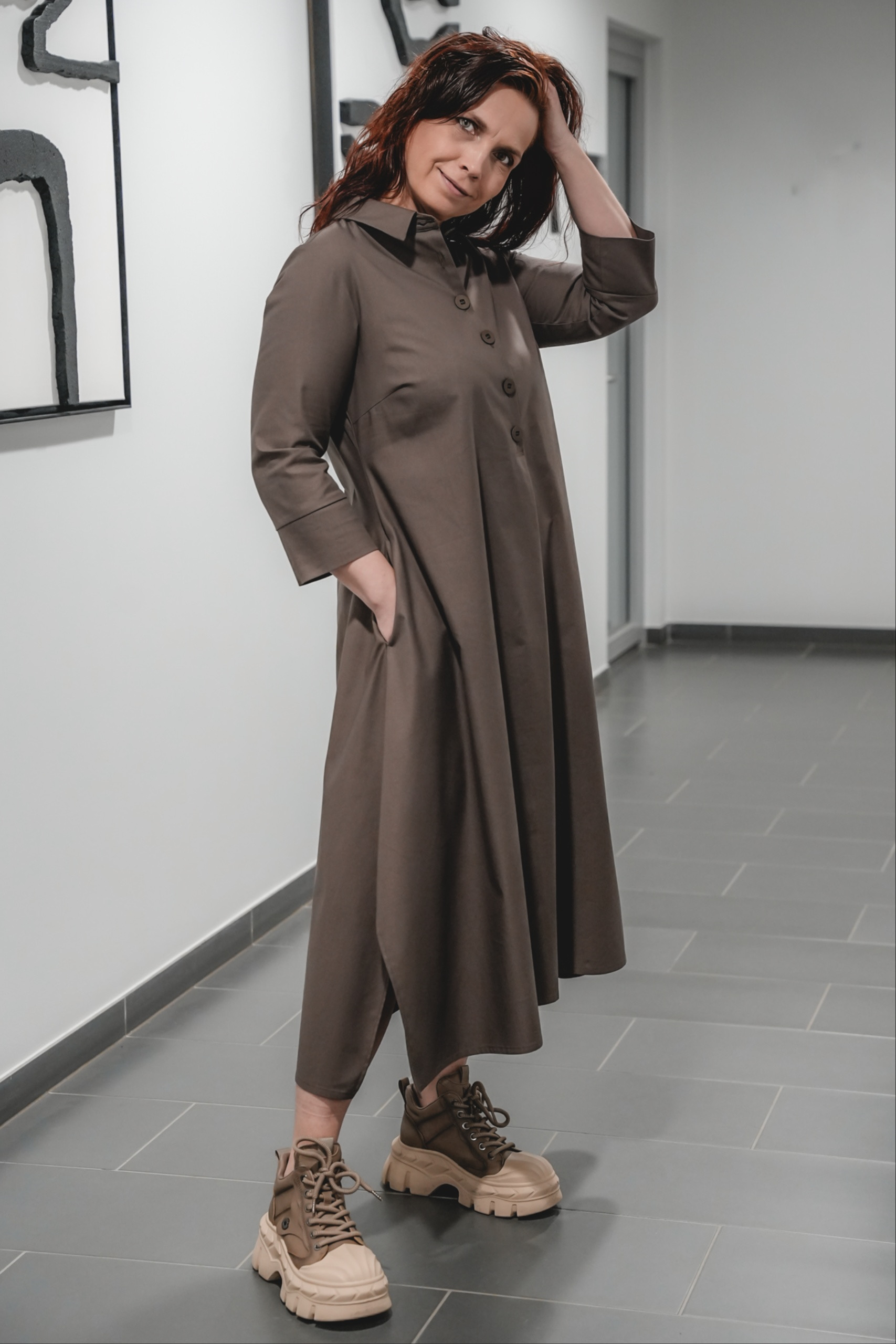 Be the first to review “Nagai, asymmetric midi dress, brown”