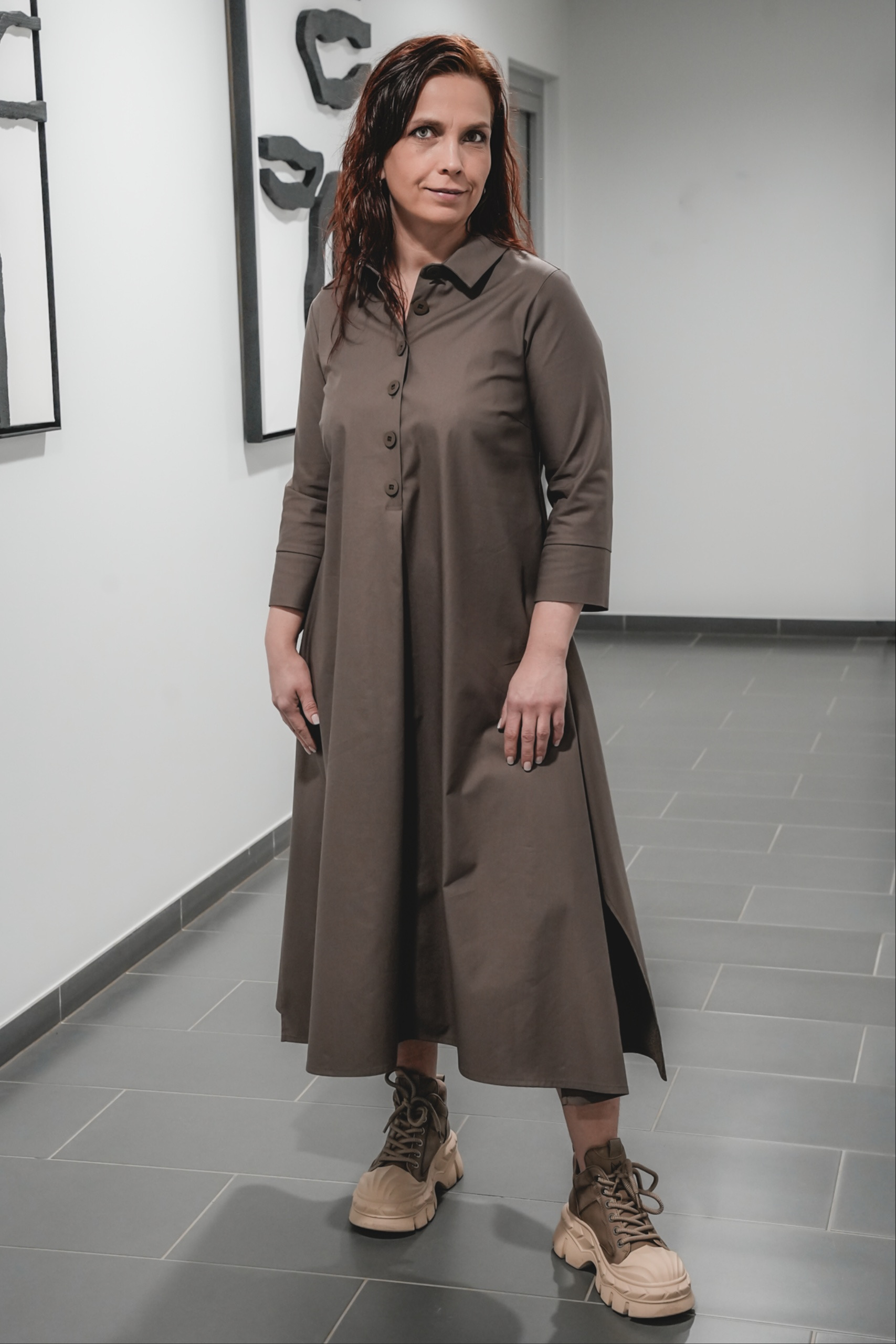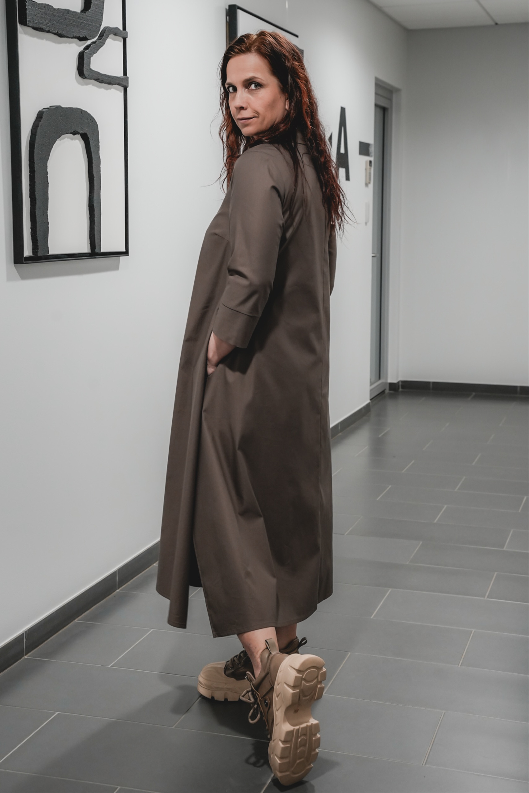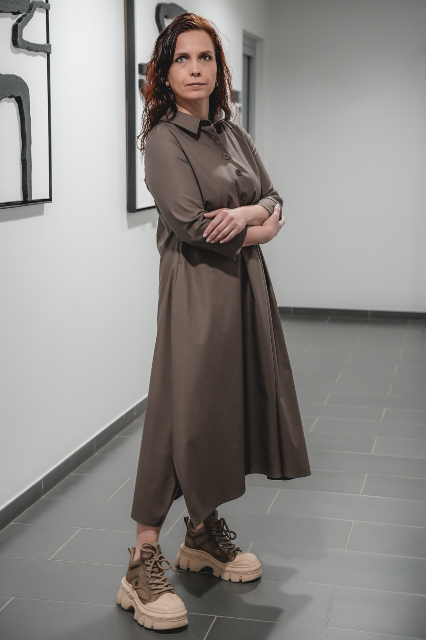 Be the first to review “Nagai, asymmetric midi dress, brown”
