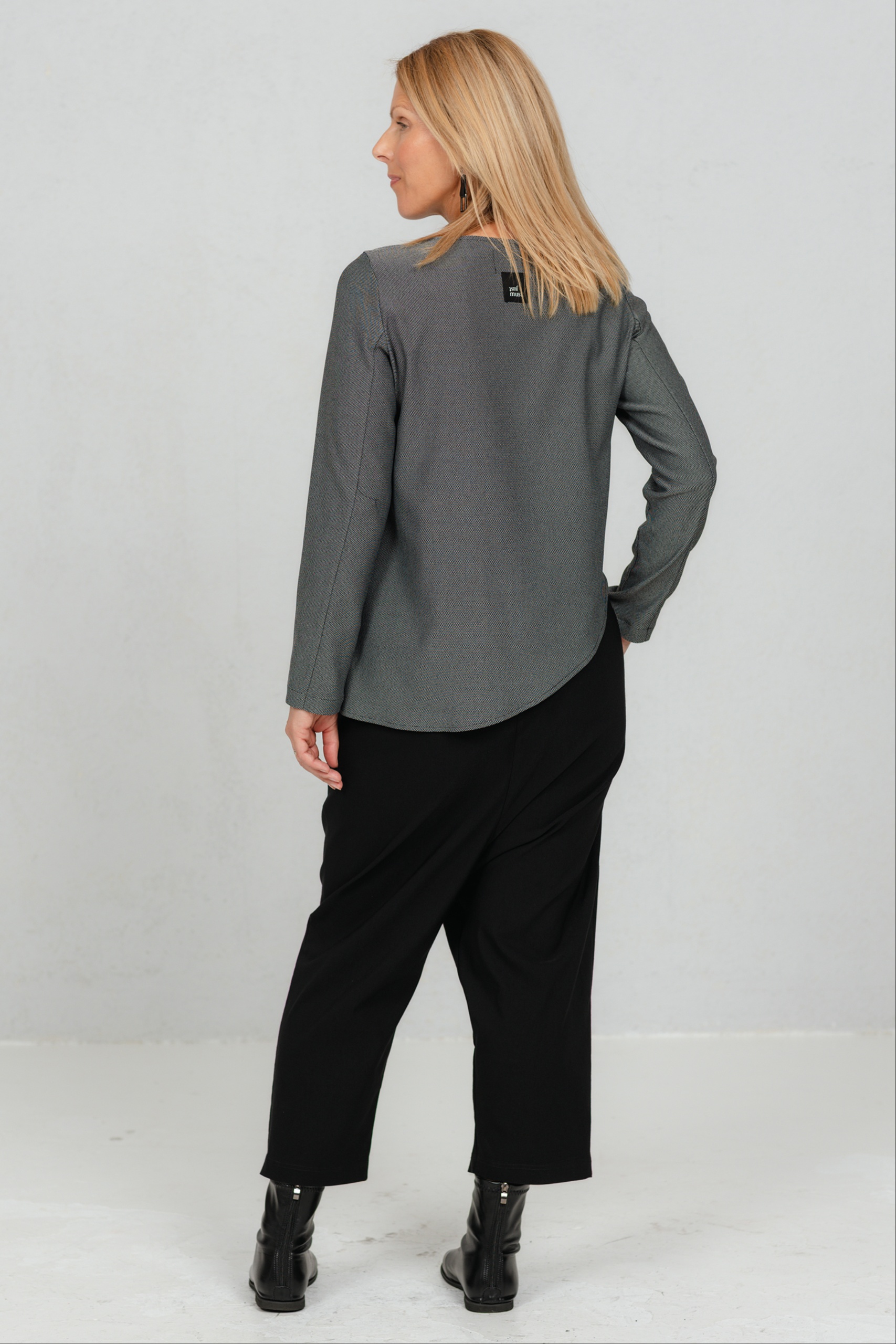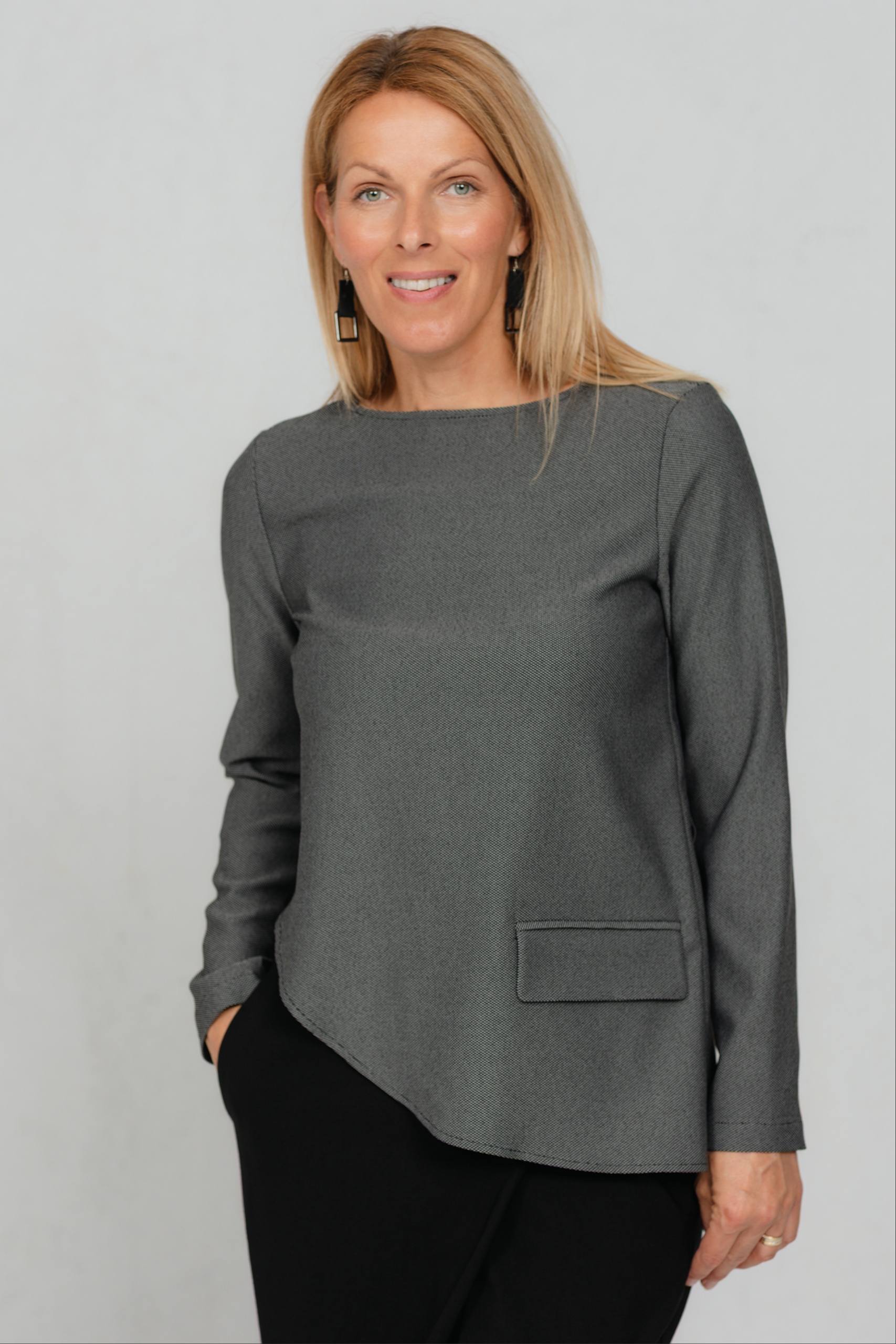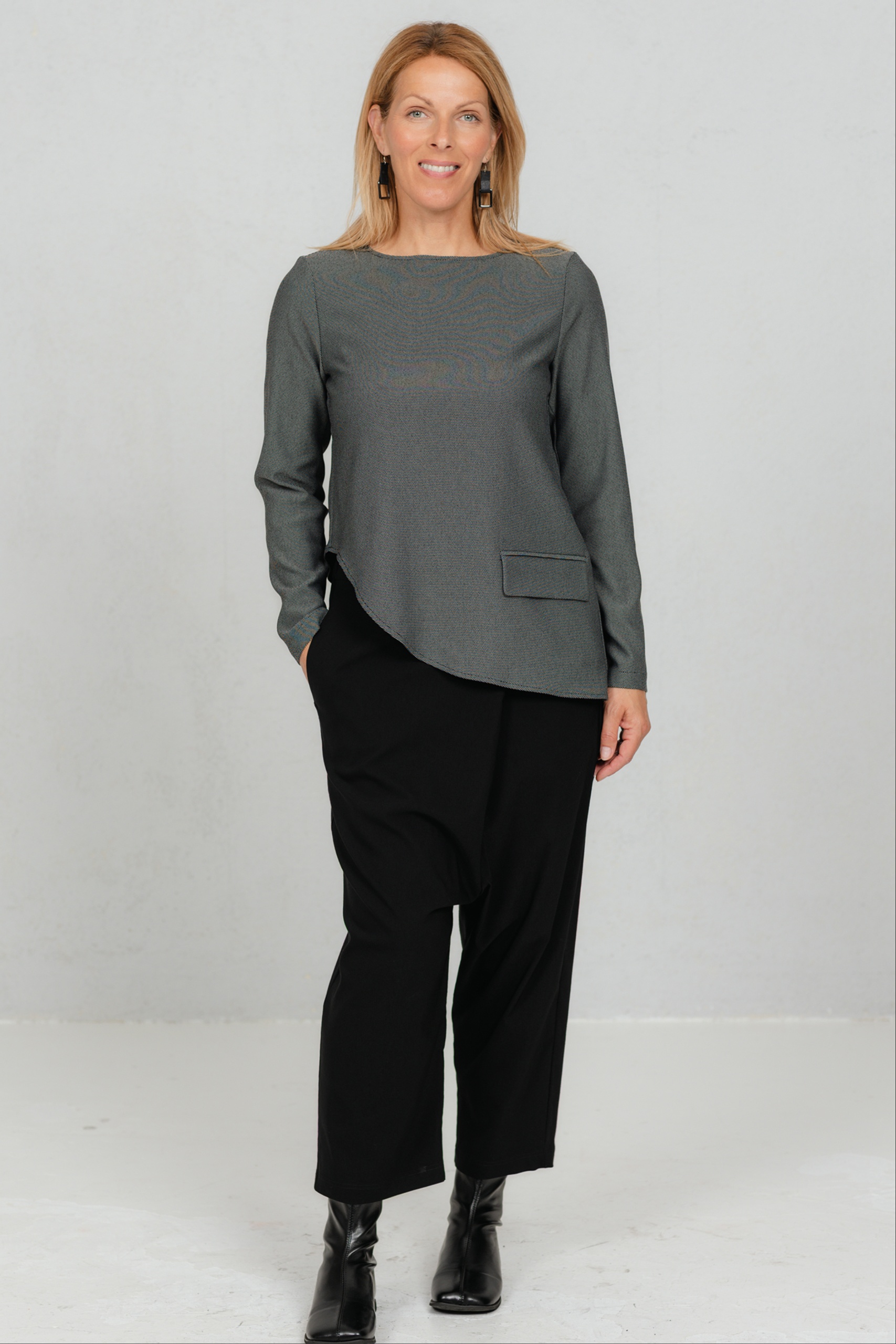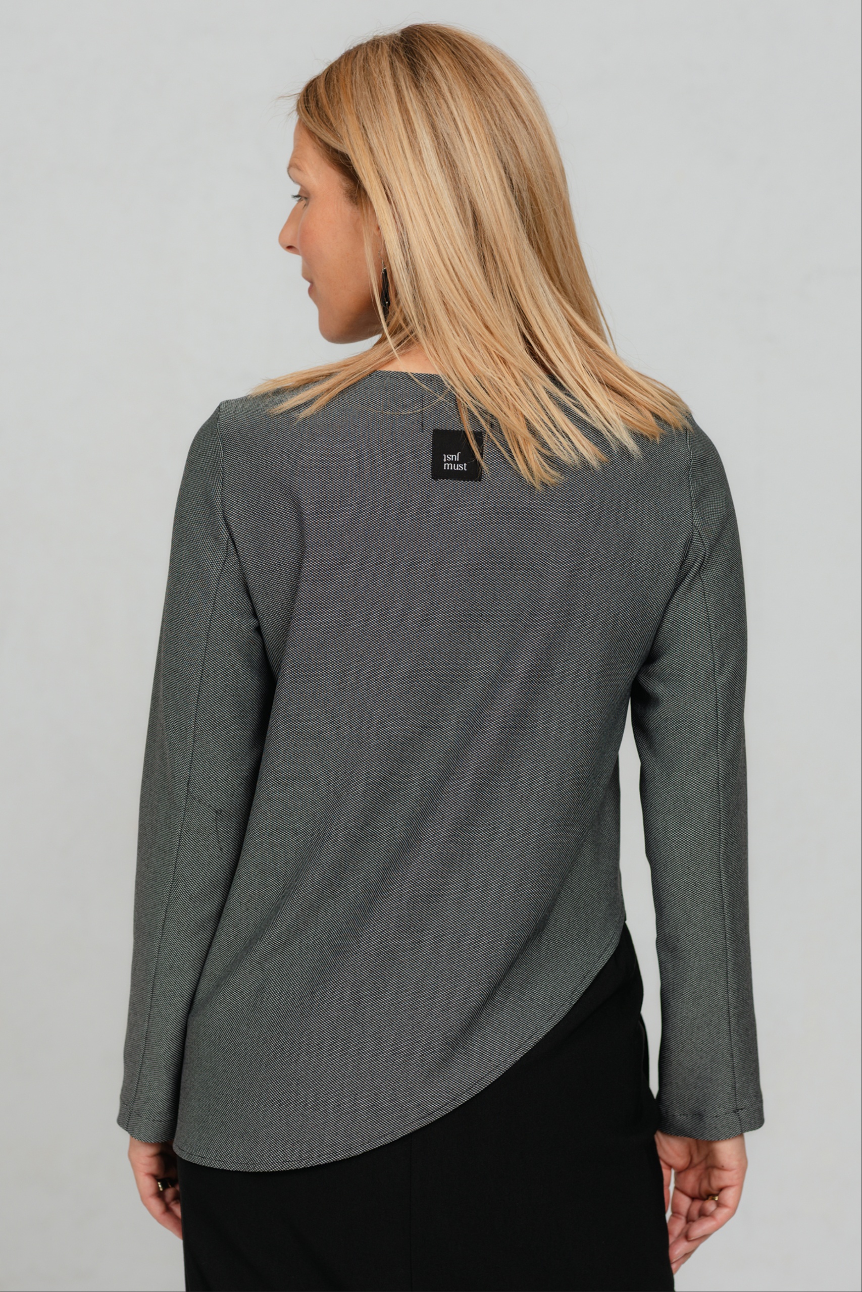 This blouse is designed for the lover of simplicity who appreciates small but thoughtful details. The classic cut is given a modern silhouette by the asymmetric bottom hem, which brings lightness and movement to the design. The fine-textured fabric fits well and follows the rhythm of the wearer, creating a clean and calm overall look. A small pocket flap detail adds a refined personality that is characteristic of JustMusta’s style. The result is more than just an ordinary blouse – it’s simple, but special.