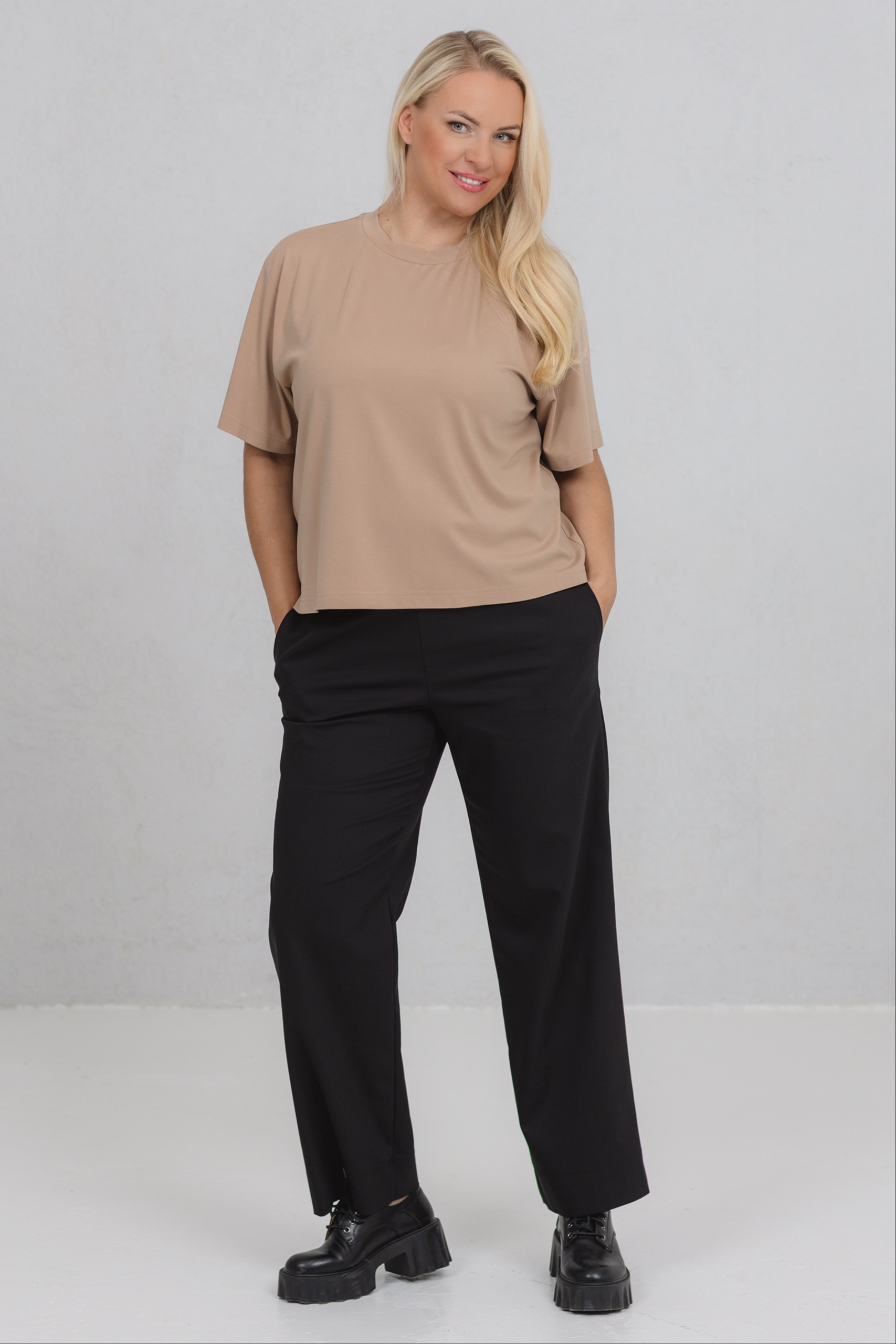 It’s the perfect blend of comfort, durability and stretch in a fabric that is both beautiful and practical for everyday wear. Viscose adds softness and a silk-like feel to the fabric, making it the ideal material for everything from comfortable trousers to elegant dresses. Polyamide provides increased resistance to wear and tear, as well as excellent shape retention, which means the garment will retain its appearance and structure over time. Elastane gives the fabric a stretch that allows the garment to stretch and mould to the body, providing a comfortable and sporty fit without any restrictions.