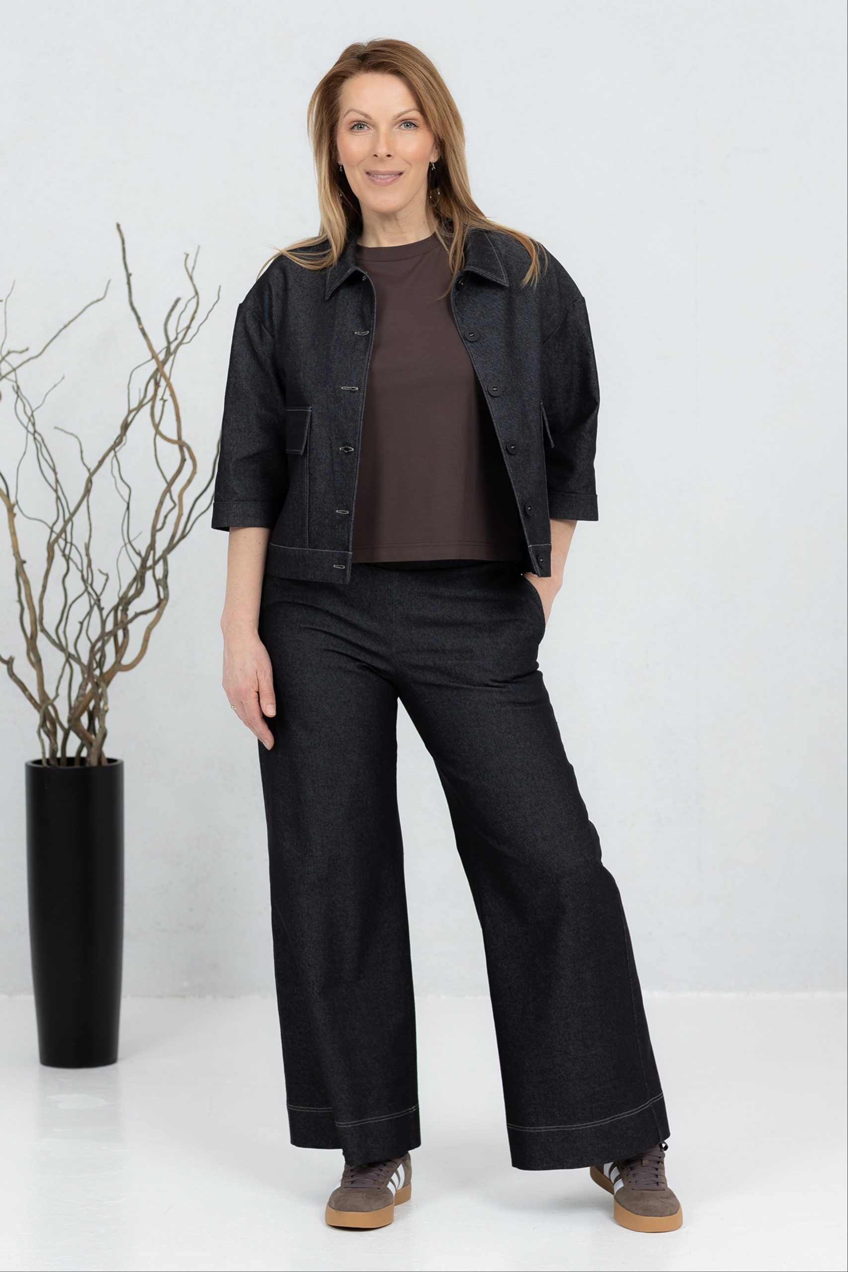 It’s the perfect blend of comfort, durability and stretch in a fabric that is both beautiful and practical for everyday wear. Viscose adds softness and a silk-like feel to the fabric, making it the ideal material for everything from comfortable trousers to elegant dresses. Polyamide provides increased resistance to wear and tear, as well as excellent shape retention, which means the garment will retain its appearance and structure over time. Elastane gives the fabric a stretch that allows the garment to stretch and mould to the body, providing a comfortable and sporty fit without any restrictions.