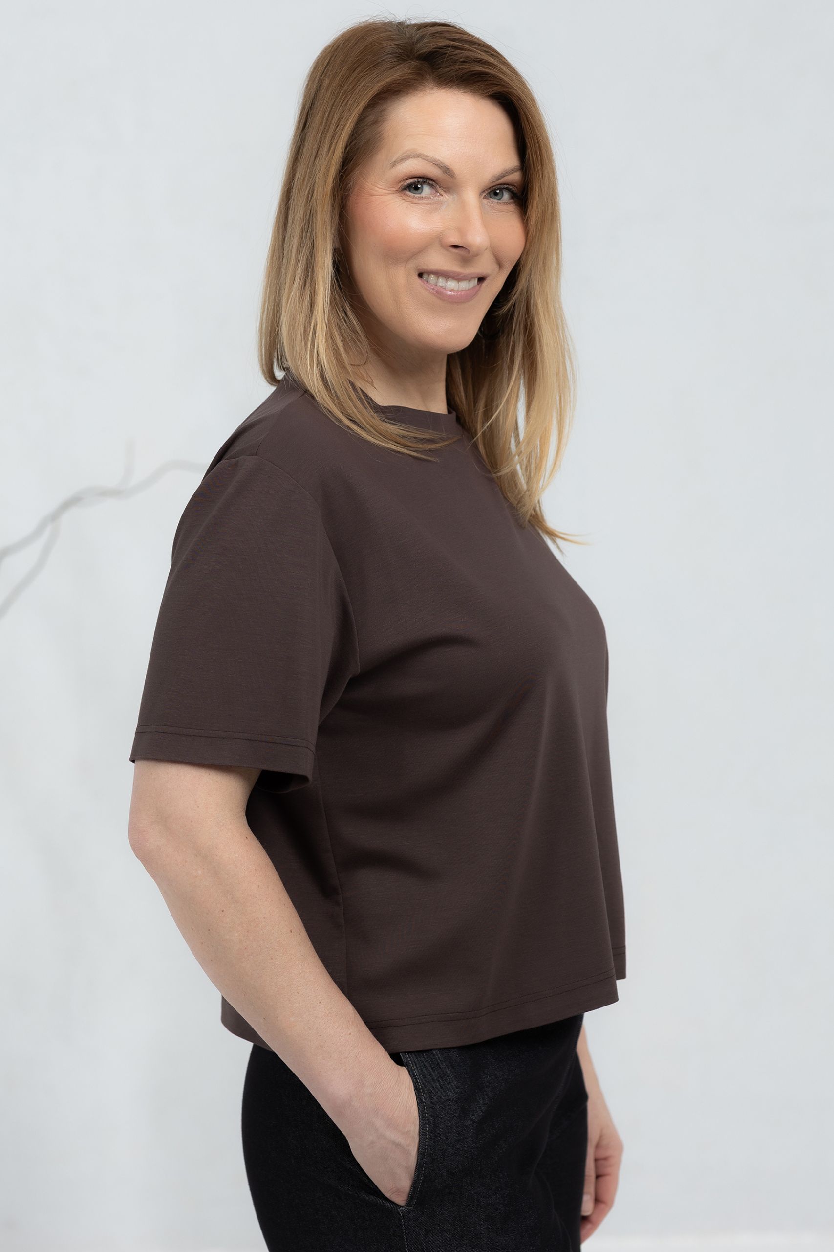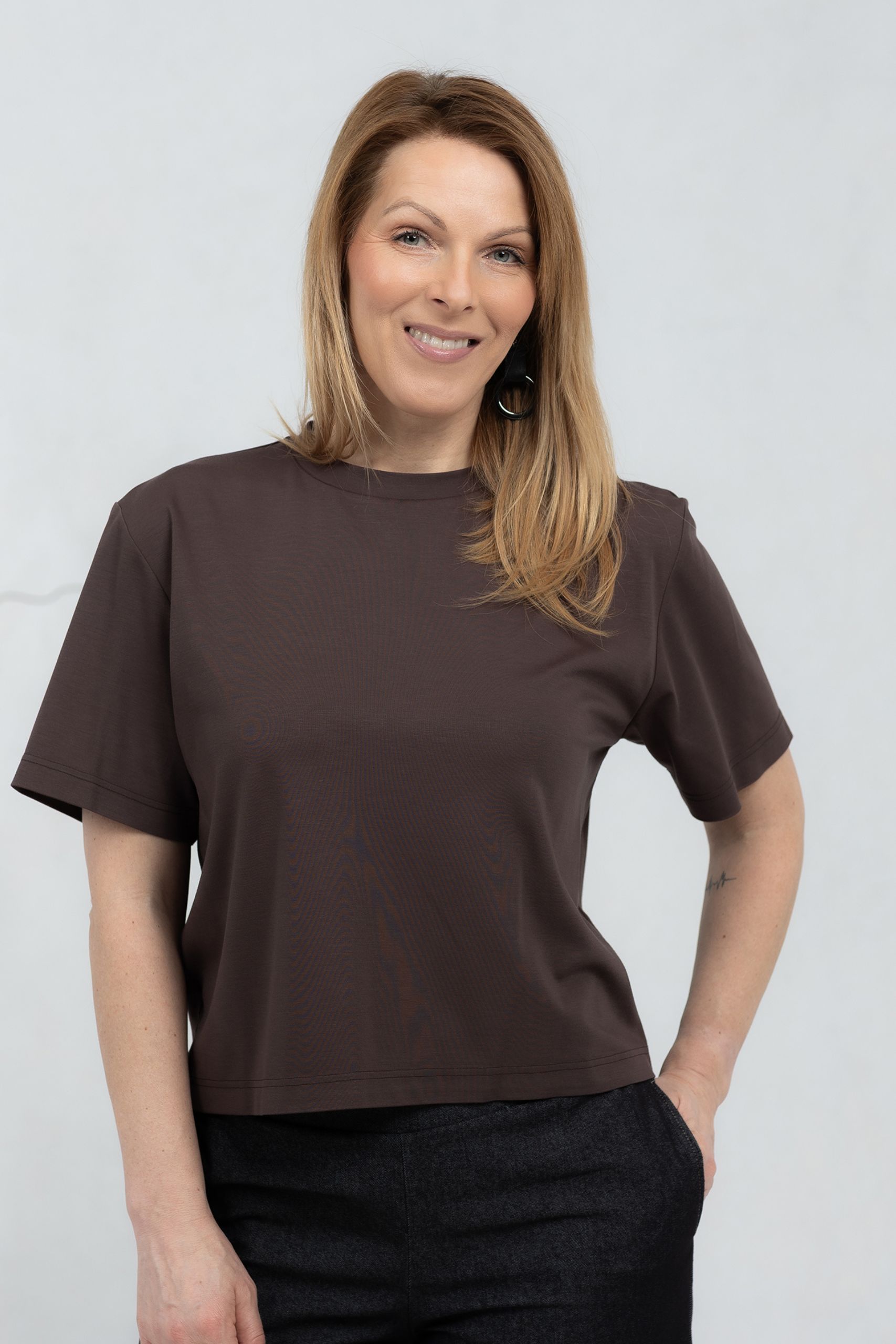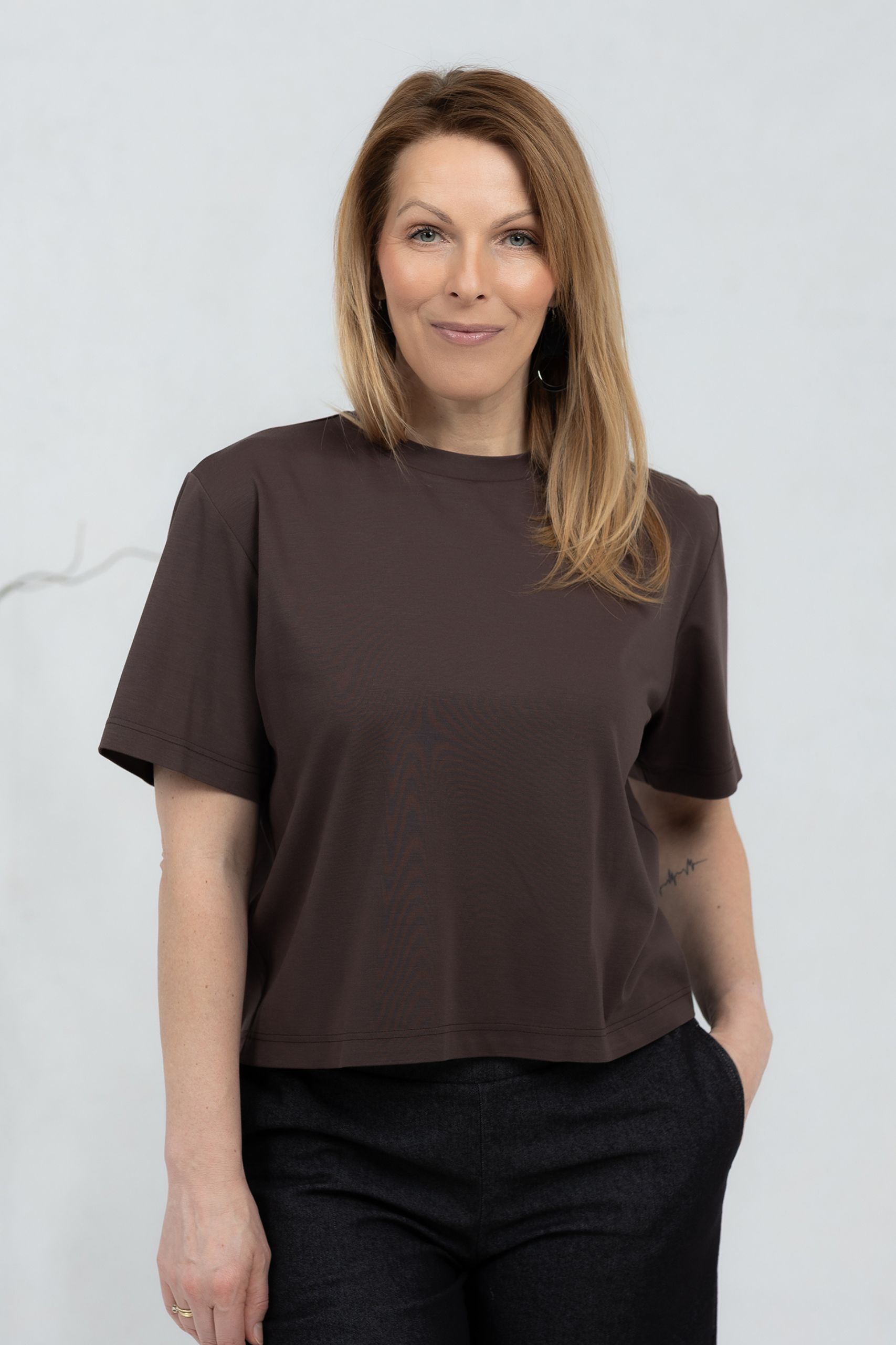 A T-shirt that takes minimalist style to a new level. With a classic cut, the shirt is made from a soft and breathable viscose fabric for ultimate comfort. Its timeless design and neutral hue make it an ideal choice to combine for everyday style as well as for an elegantly layered look. Wear it with jeans, pants or skirts – the possibilities are endless! A simple yet stylish T-shirt that will never go out of style.
