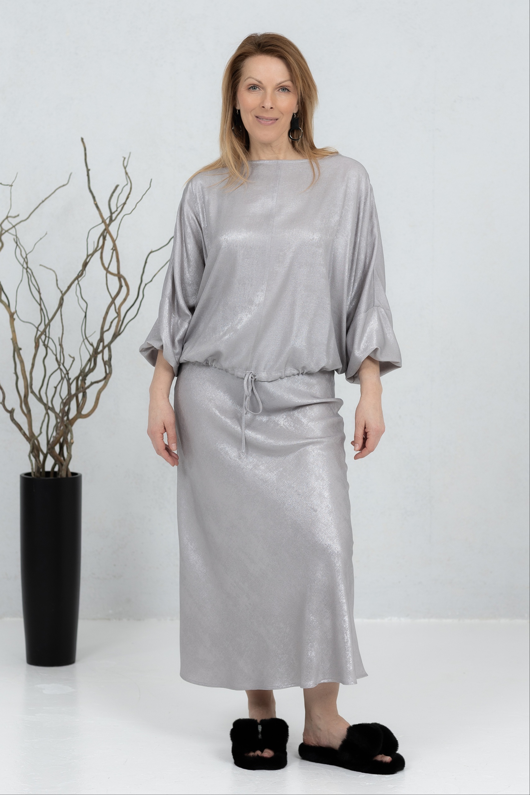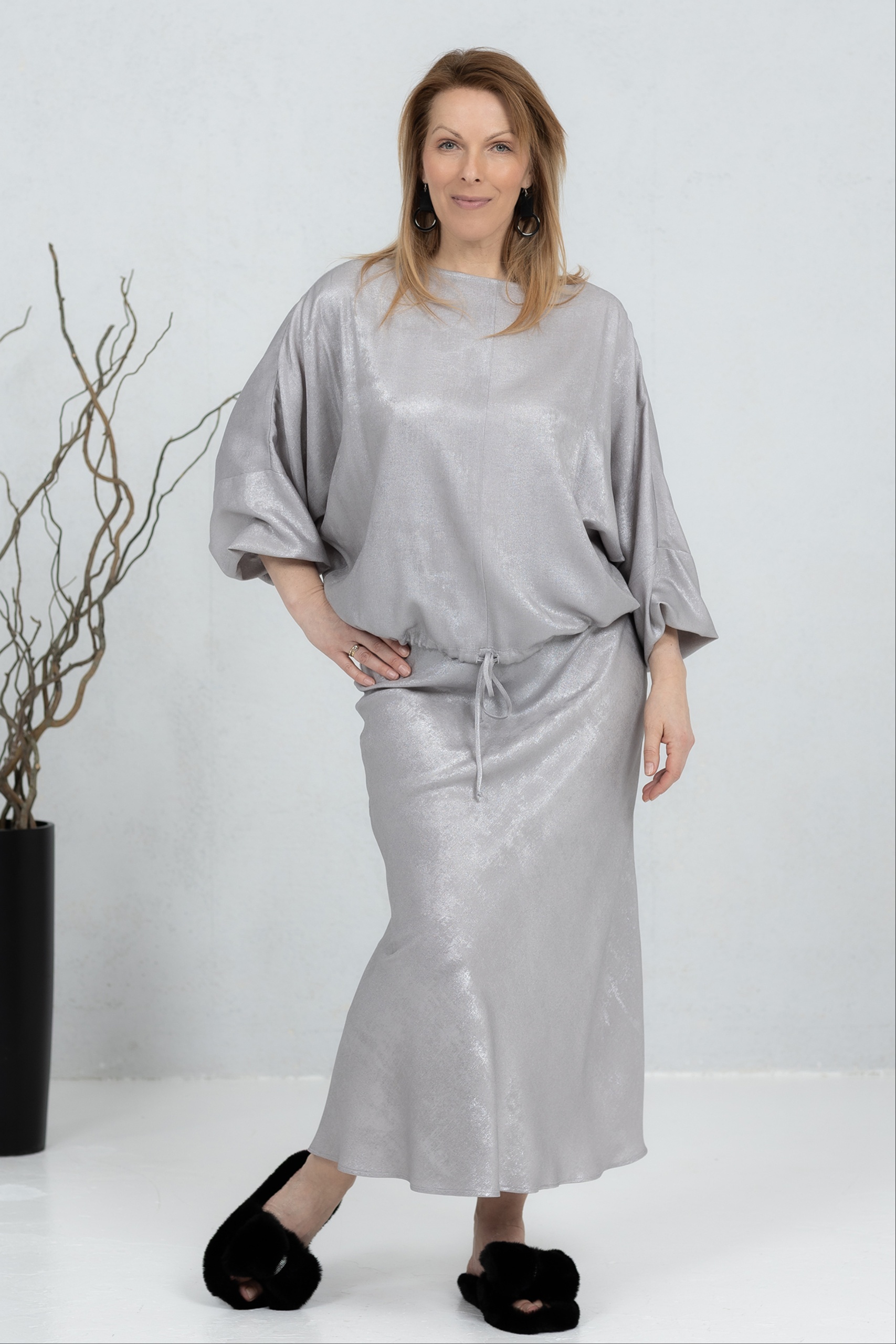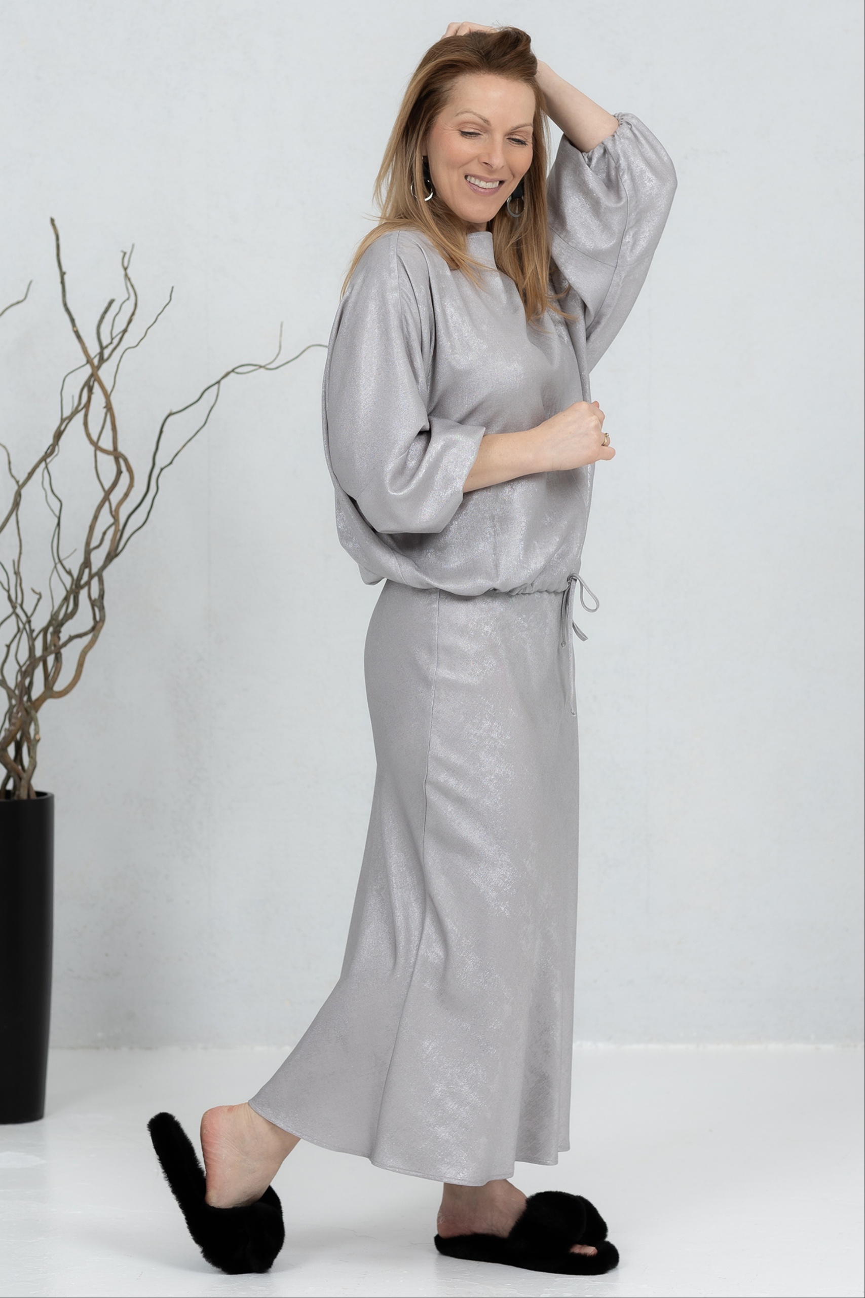 A beautifully light skirt made from soft viscose fabric that flows effortlessly with every step. The fabric has a luxurious sheen that adds an elegant and refined touch to your look. Its comfortable cut makes it easy to wear from morning to evening. The skirt moves gracefully and feels wonderfully light on the body. A perfect piece to elevate both everyday and more special outfits.