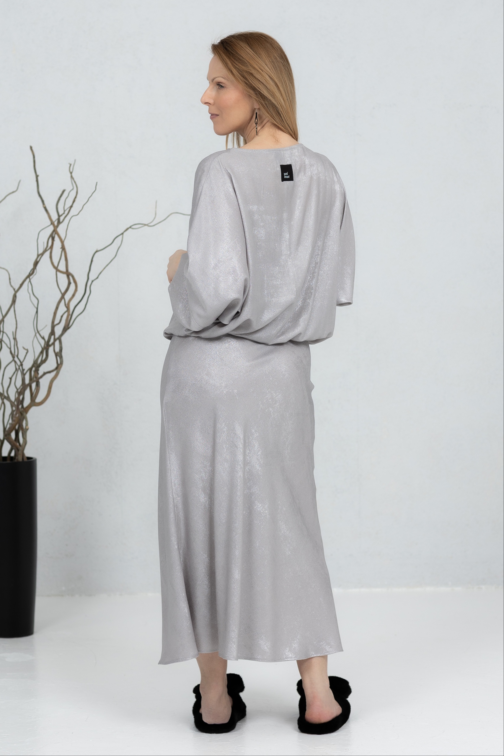 The 60% polyester and 40% viscose blend combines durability and comfort. The fabric is soft and drape beautifully while holding its shape well. The viscose makes the material skin-friendly and breathable, while the polyester adds strength and reduces wrinkling. The perfect choice for everyday wear when you want comfort and practicality in one.
