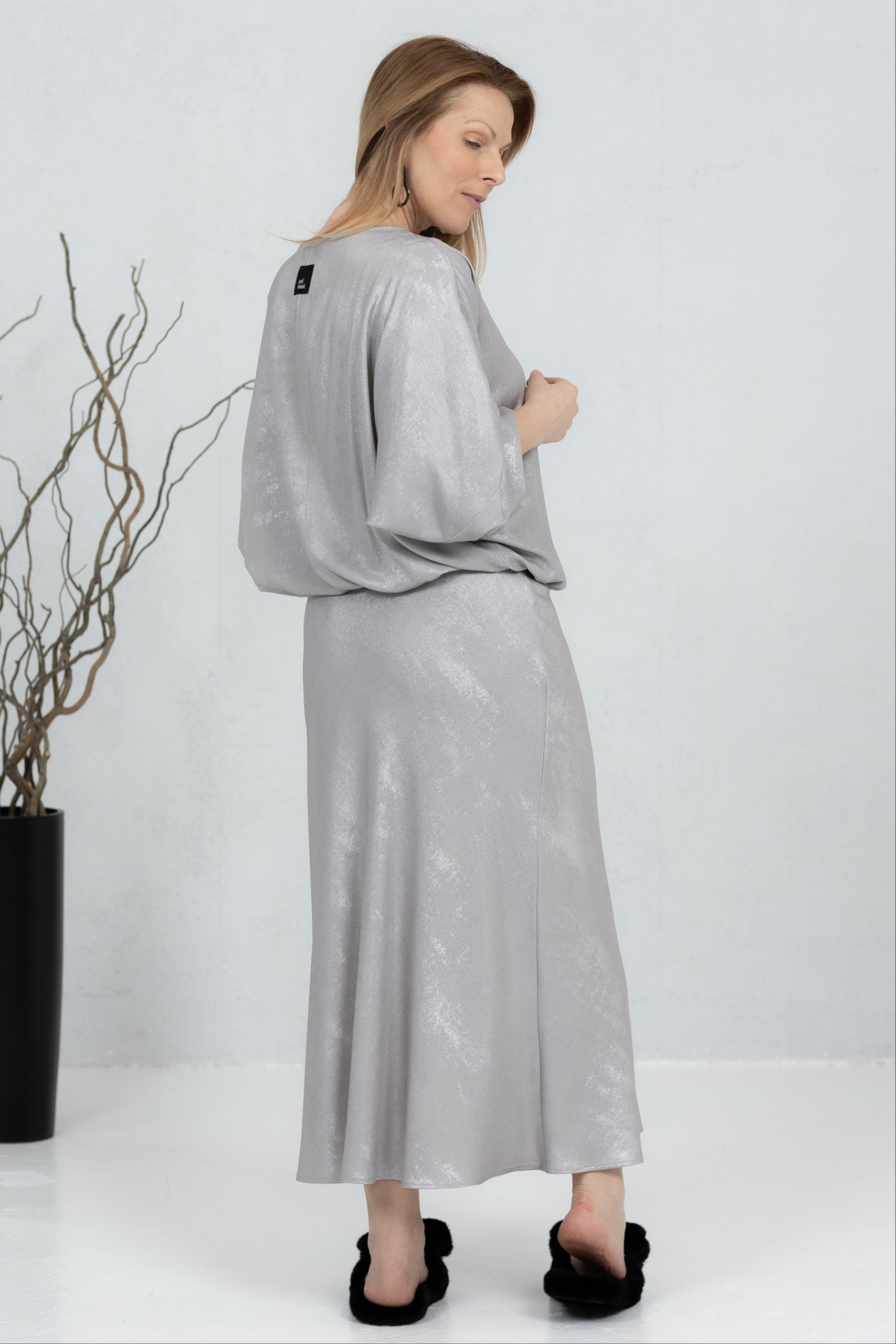Be the first to review “Taro, skirt in shiny viscose, grey”