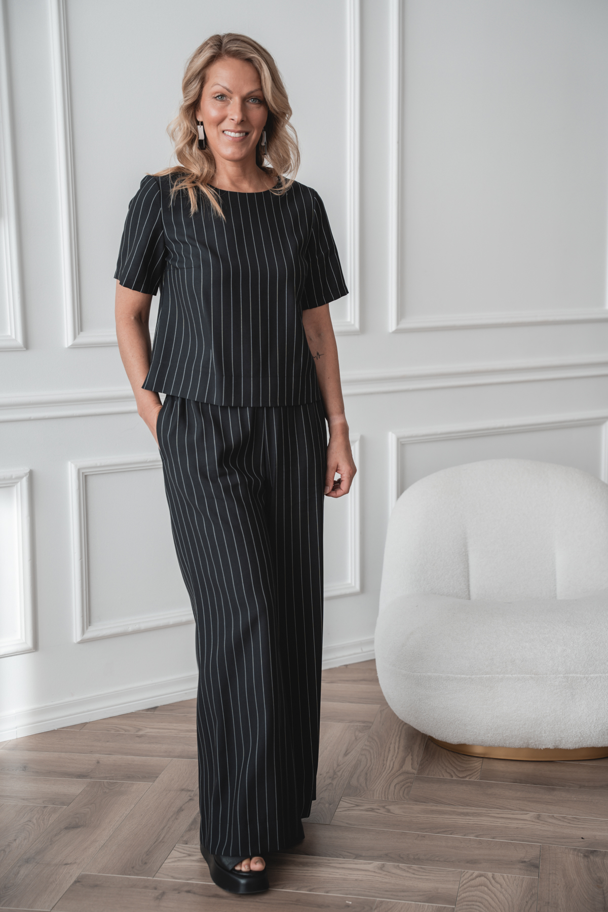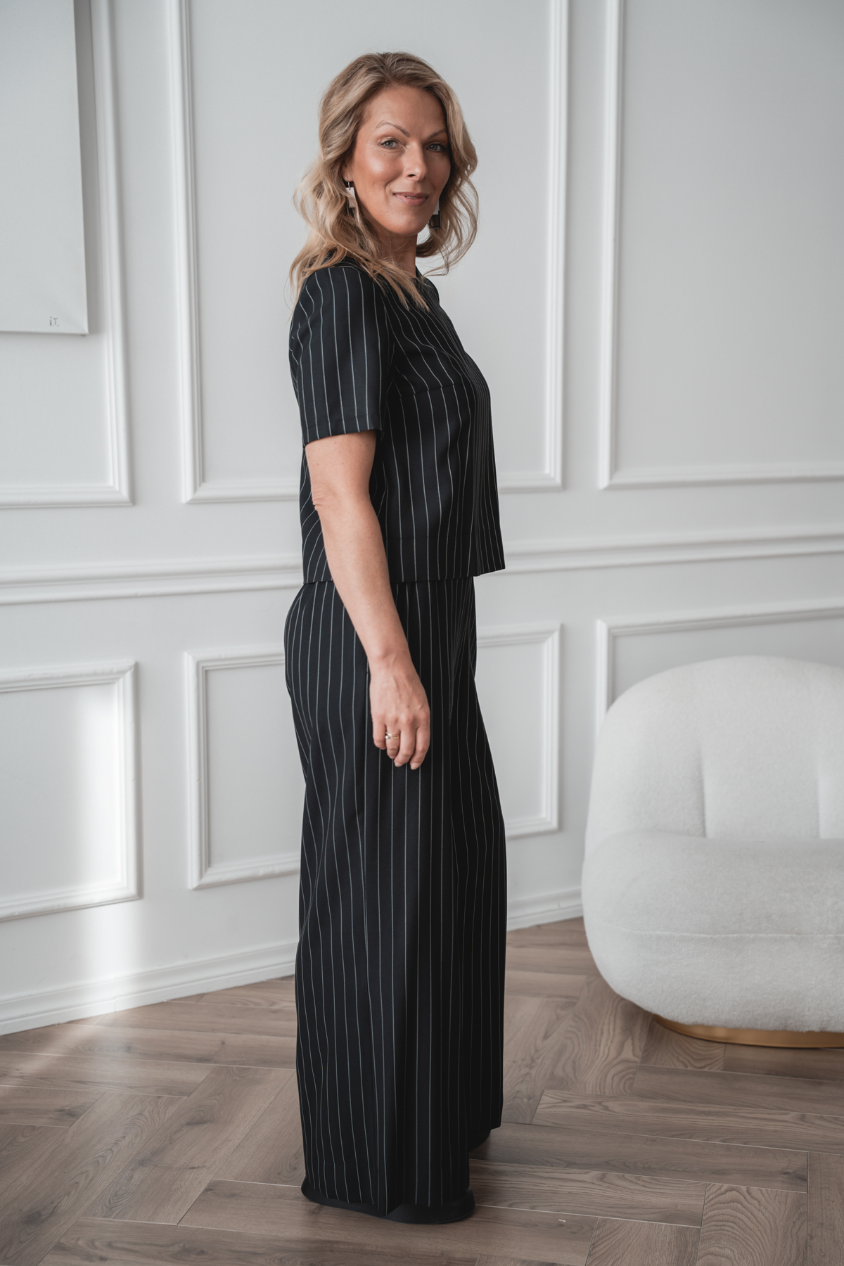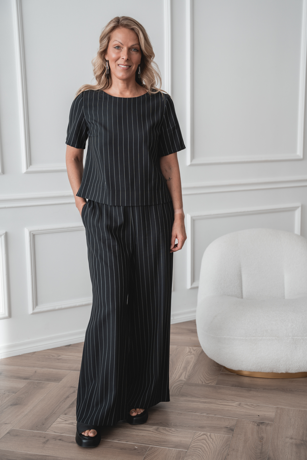 Lightweight and comfortable wide-leg trousers that fall beautifully and allow freedom of movement. The subtle stripe pattern adds an elegant and slightly elongating effect. The stretchy and soft fabric makes them the ideal choice for both work and leisure. Pair with a blouse in the same pattern or wear on its own – always stylish.