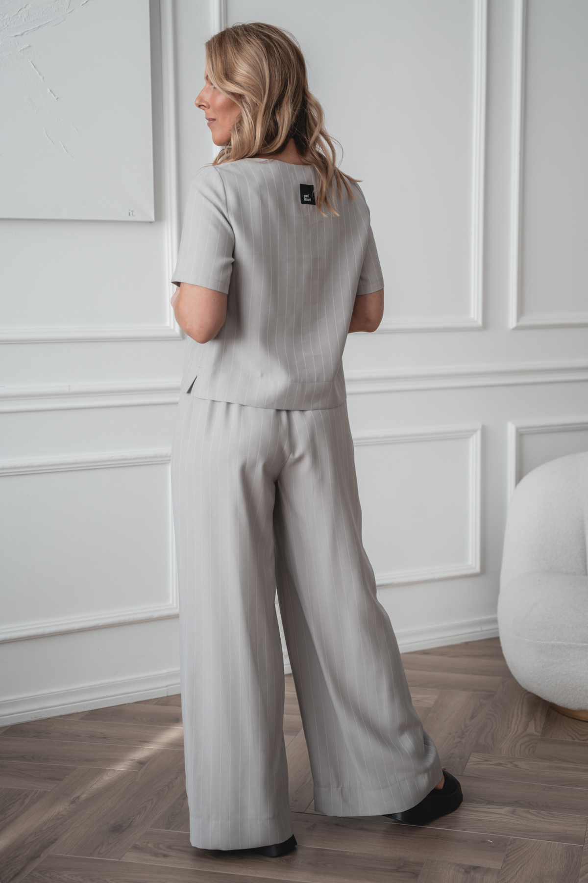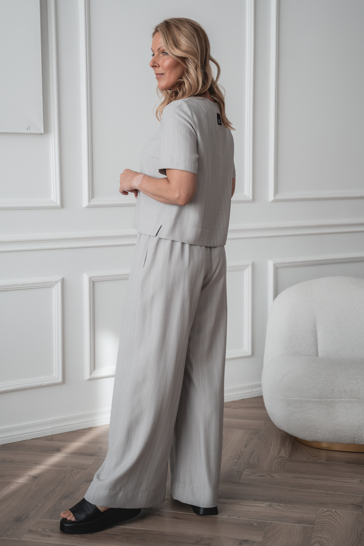 Lightweight and comfortable wide-leg trousers that fall beautifully and allow freedom of movement. A subtle stripe pattern adds an elegant and slightly elongating effect. The stretchy and soft fabric makes them the ideal choice for both work and leisure. Pair with a blouse in the same pattern or wear on its own – always stylish.