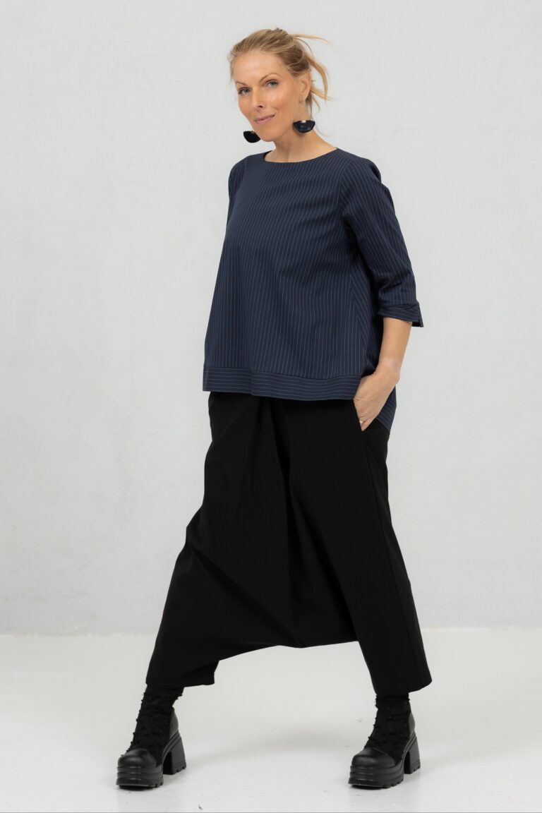 Minimalist wide-cut blouse Anata, navy stripe